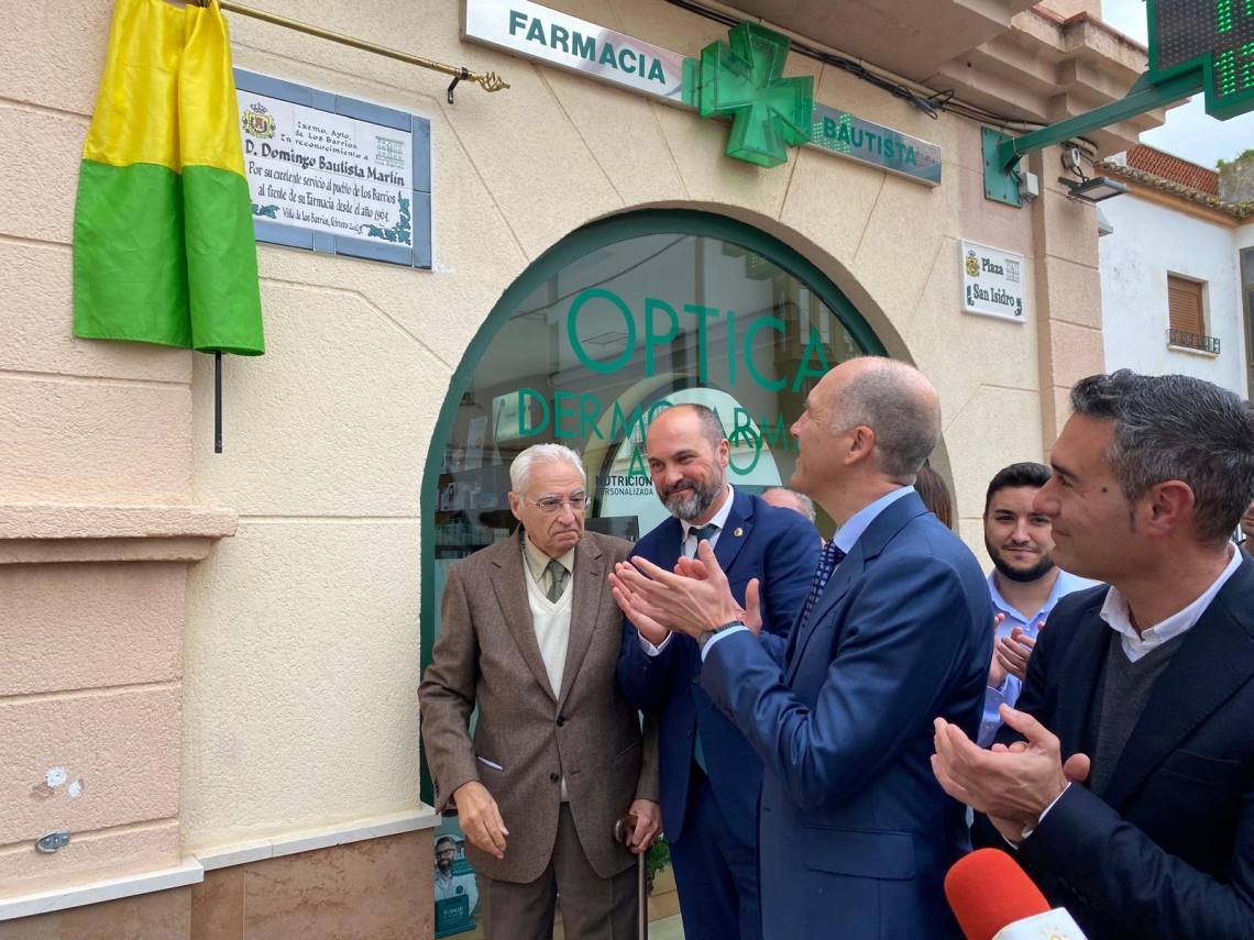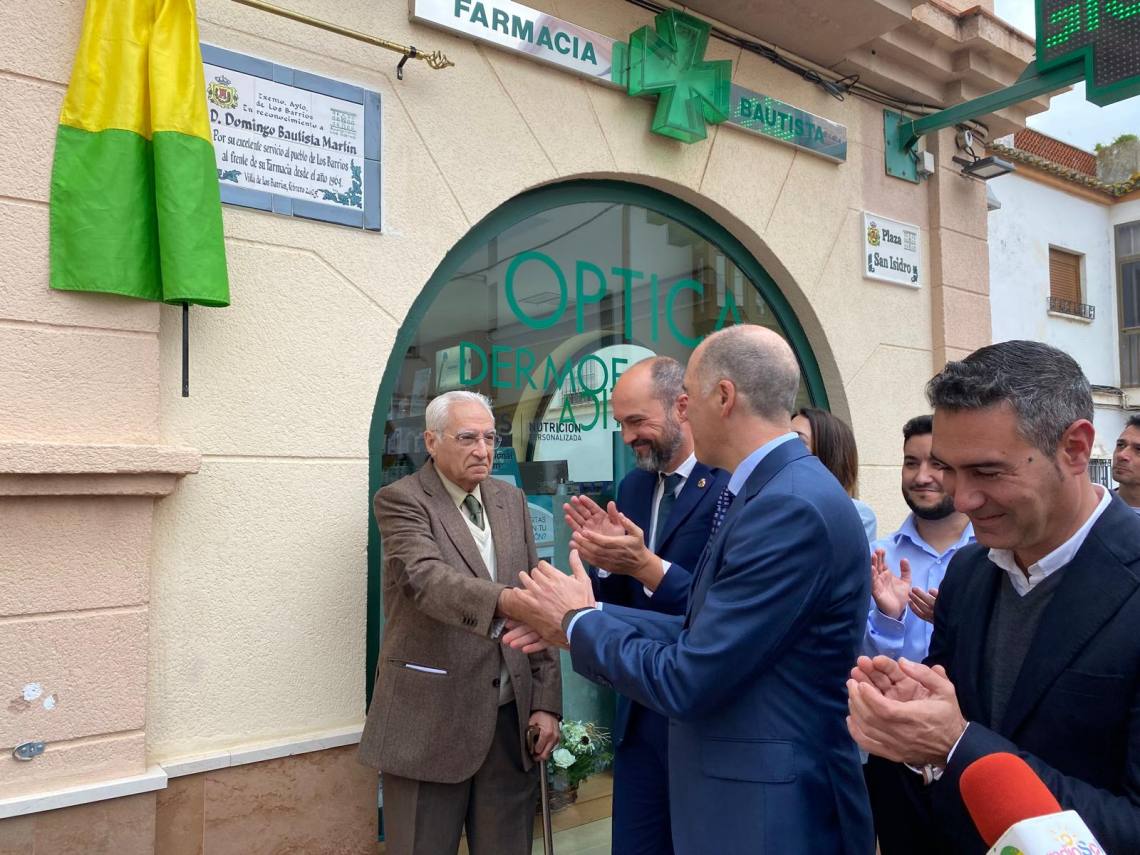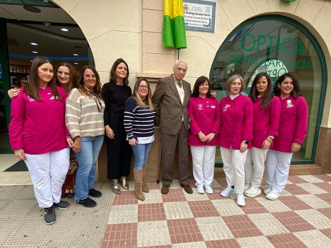Un emotivo acto que ha reunido a vecinos, familiares, profesionales farmacéuticos para rendir homenaje a Domingo Bautista por su dedicación al bienestar de la comunidad barreña.