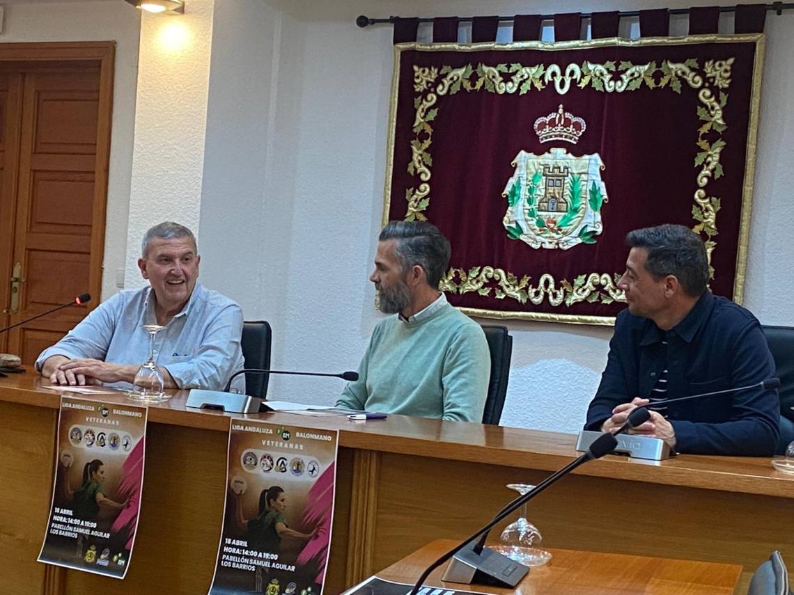 El salón de plenos del Ayuntamiento de Los Barrios ha acogido esta mañana la presentación oficial de la próxima jornada de la Liga Andaluza de Veteranas de Balonmano, que se disputará en la localidad el sábado 18 de abril. El acto ha contado con la presencia del delegado de Deportes, Raúl Álvarez; el delegado de Sanidad, Carlos Torres, y el presidente del Club de Balonmano Ciudad de Algeciras, Pedro Soria.