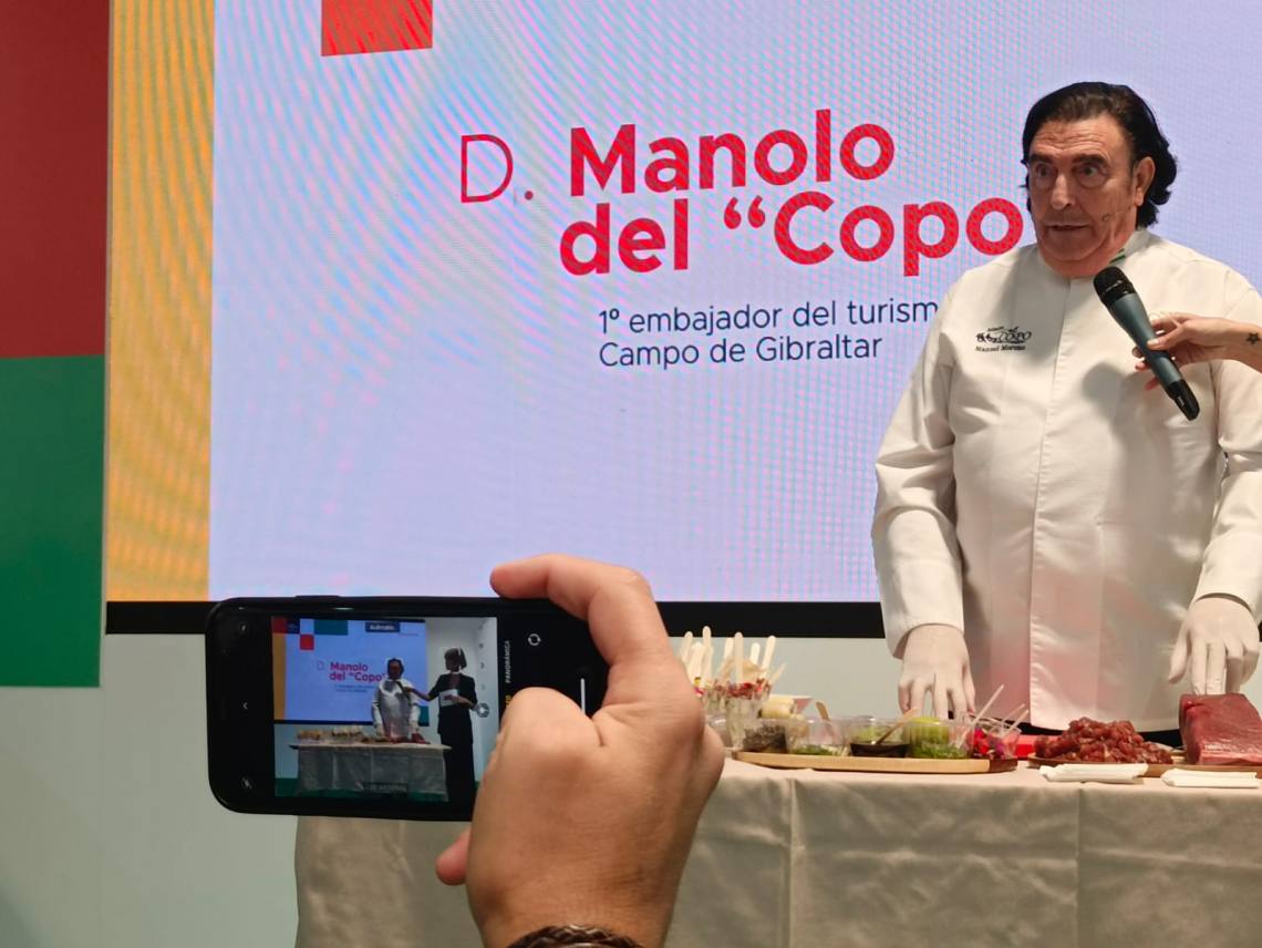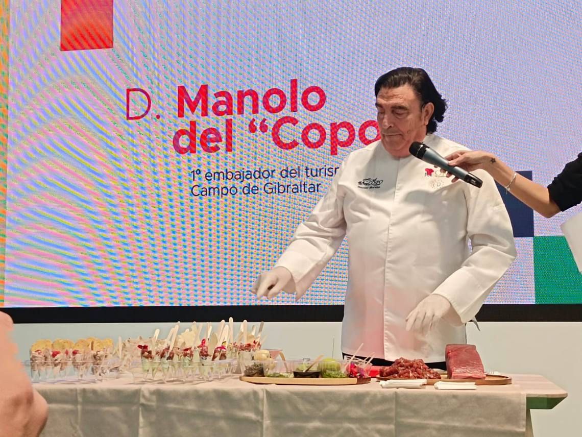 La gastronomía del municipio también ha tenido protagonismo este jueves con la cocina en directo de Manuel Moreno Rojas, Manolo del Copo, que ha elaborado atún en manteca y un tataki de dados de atún de almadraba con un aceite de almendra.