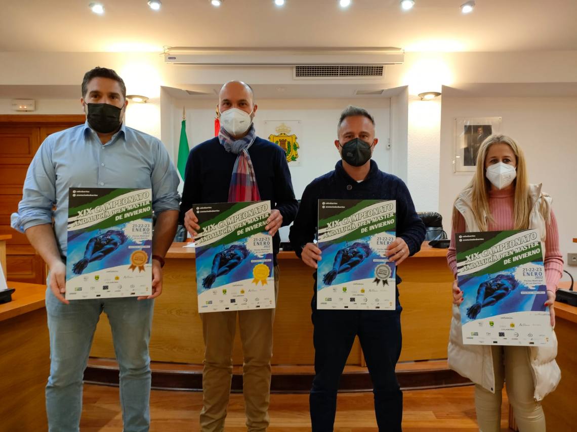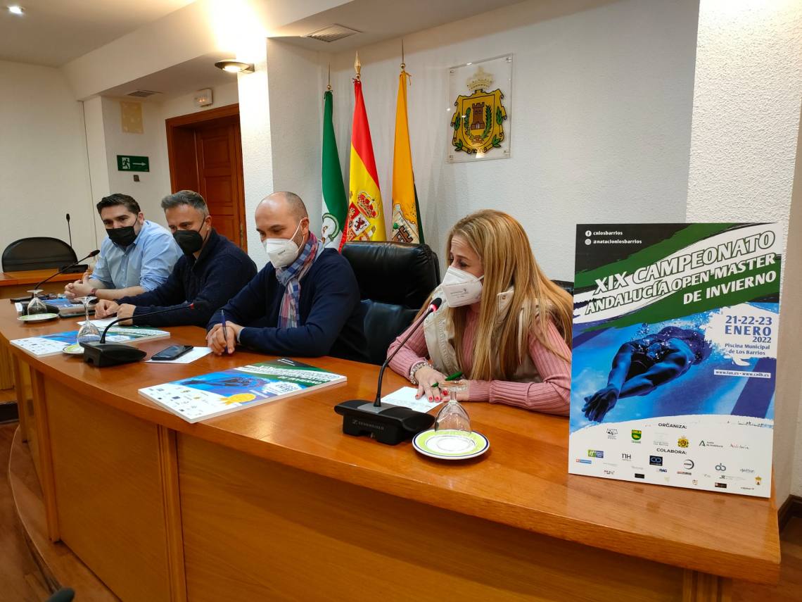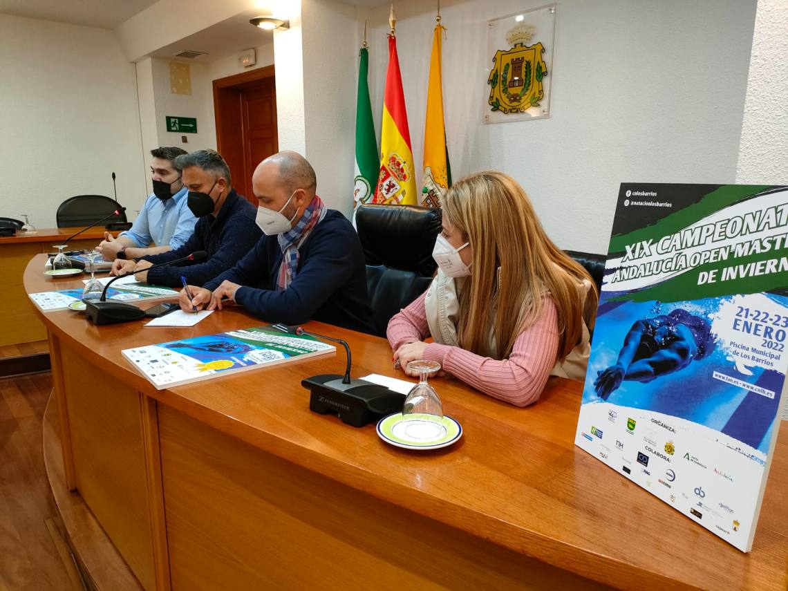 El alcalde de Los Barrios, Miguel Alconchel; la edil de Deportes, May Gallego; el presidente del Club Natación Villa de Los Barrios, Ricardo Lozano; y el presidente de la Federación Andaluza de Natación, Francisco Olmos García, han presentado esta tarde en salón de plenos el XIX Campeonato Andalucía Open Master de Invierno de Natación, que se celebrará en las instalaciones de la piscina cubierta de Los Barrios del 21 al 23 de enero.
