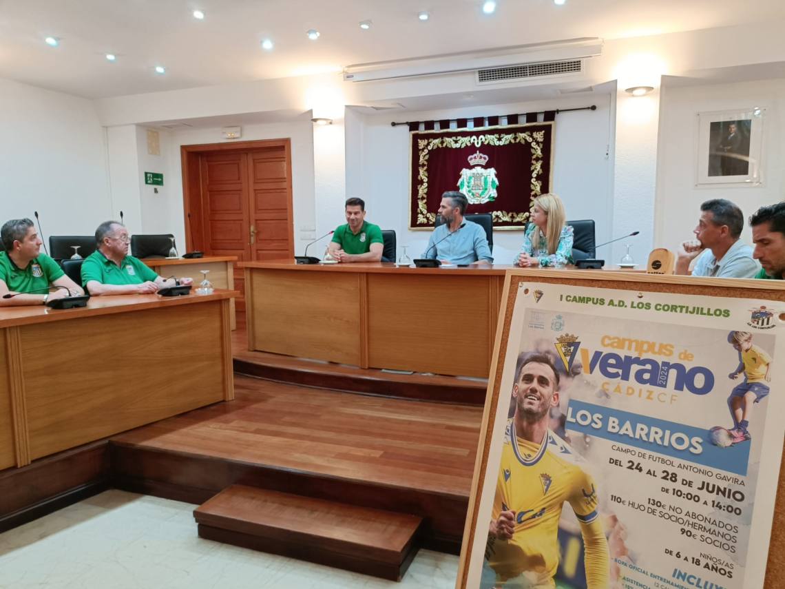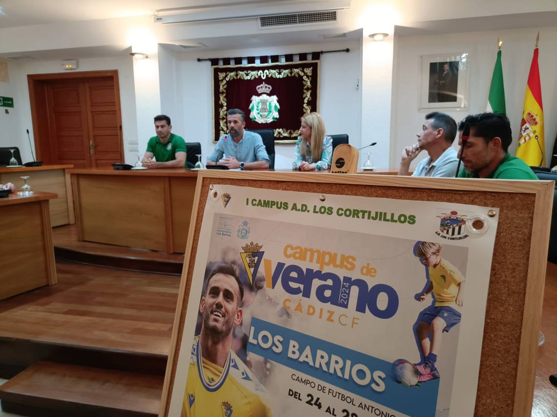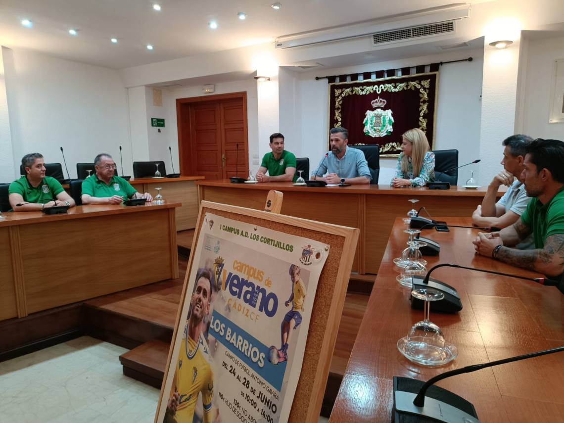 El concejal de Deportes, Raúl Álvarez, y la concejala delegada de Los Cortijillos, May Gallego, han presentado esta mañana en el Ayuntamiento barreño el Campus de Verano, que organiza el Cádiz CF y que se celebrará en el campo ‘Antonio Gavira’ de Los Cortijillos.