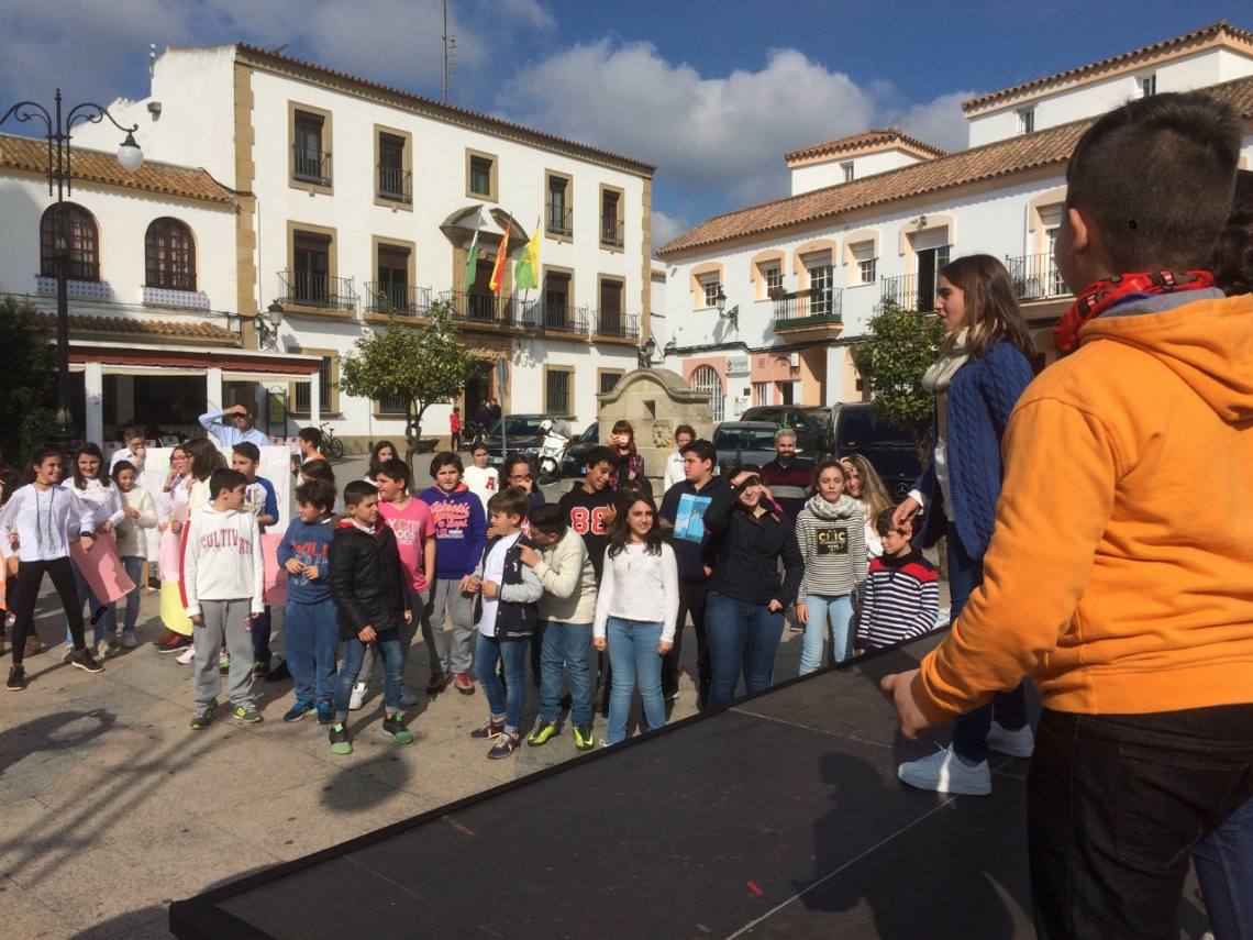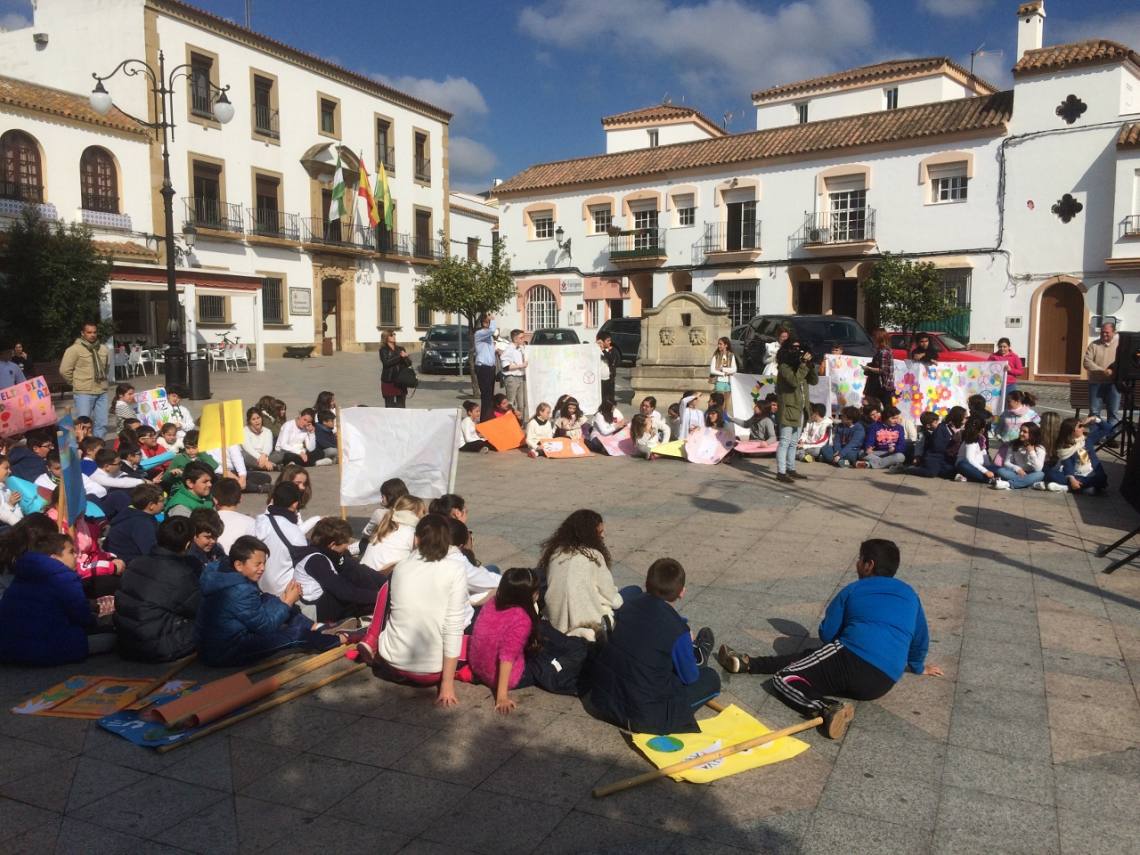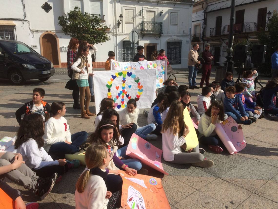Unos 150 niños y niñas de Primaria de los distintos centros escolares de Los Barrios han celebrado este mediodía en la Plaza de la Iglesia el Día Escolar de la No Violencia y la Paz que se celebra cada 30 de enero desde 1964 en memoria de Mahatma Gandhi.