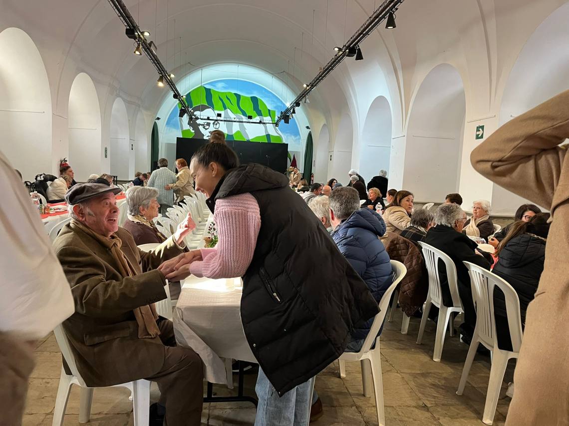 La delegada de Participación Ciudadana, Sara Lobato, y la delegada de Servicios Sociales, May Gallego, han asistido hoy a la merienda de Navidad que la Residencia de Ancianos San Ramón Nonato ha ofrecido a sus internos e internas en la sala del edificio Pósito.