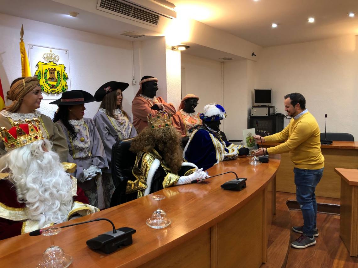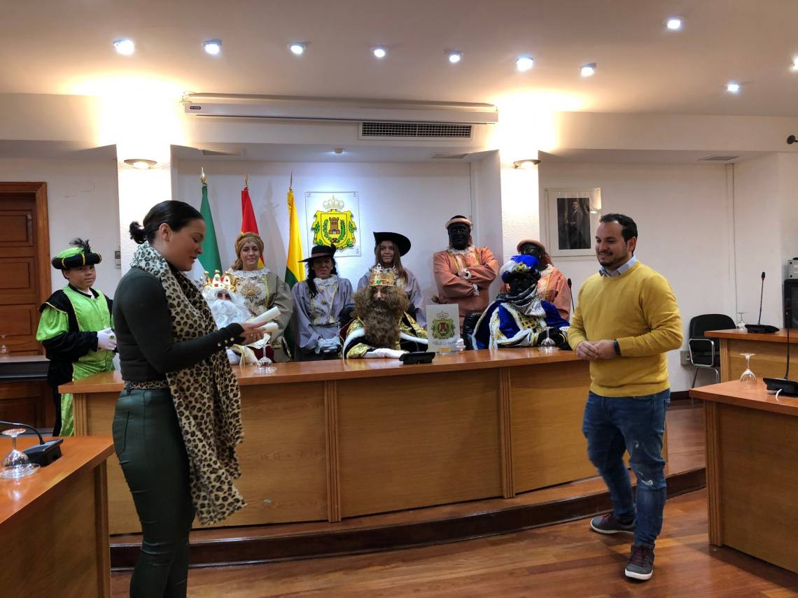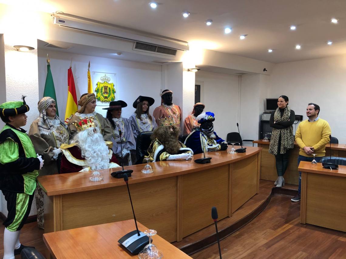 Los Reyes Magos han llegado esta mañana a Los Barrios y su primera parada ha sido el salón de plenos del Ayuntamiento, donde han sido recibidos en una recepción oficial por el delegado de Festejos, Daniel Pérez, además de la primera teniente alcalde, Sara Lobato.