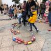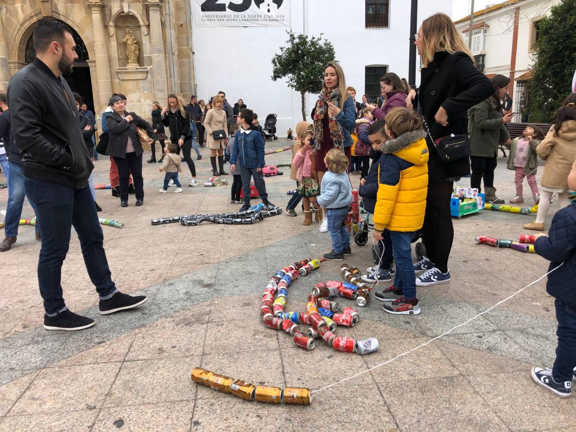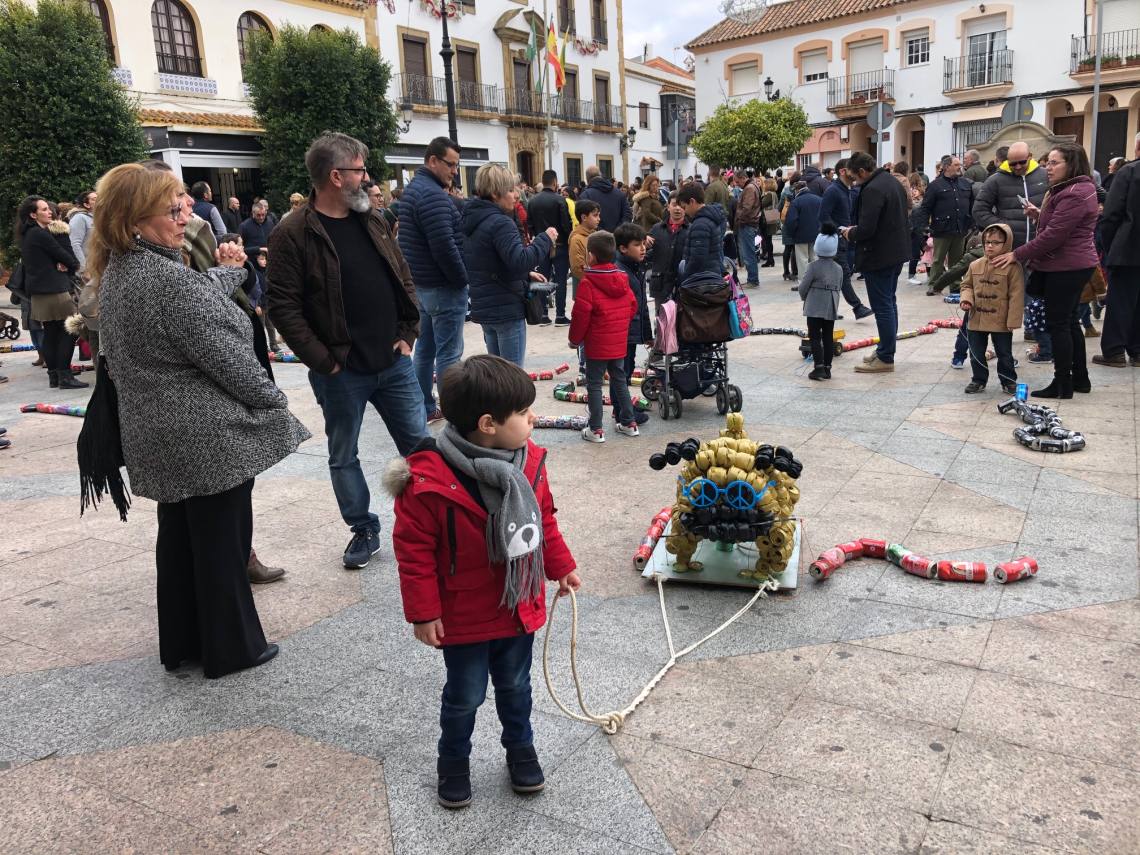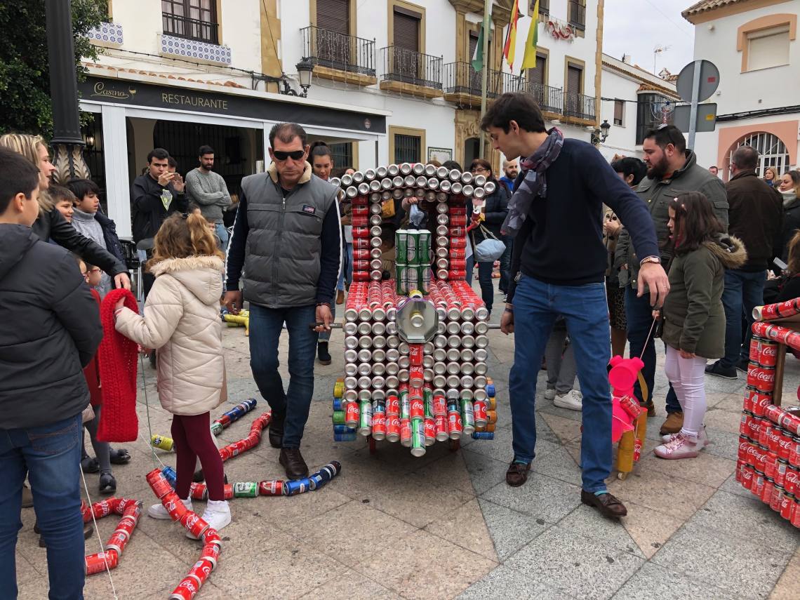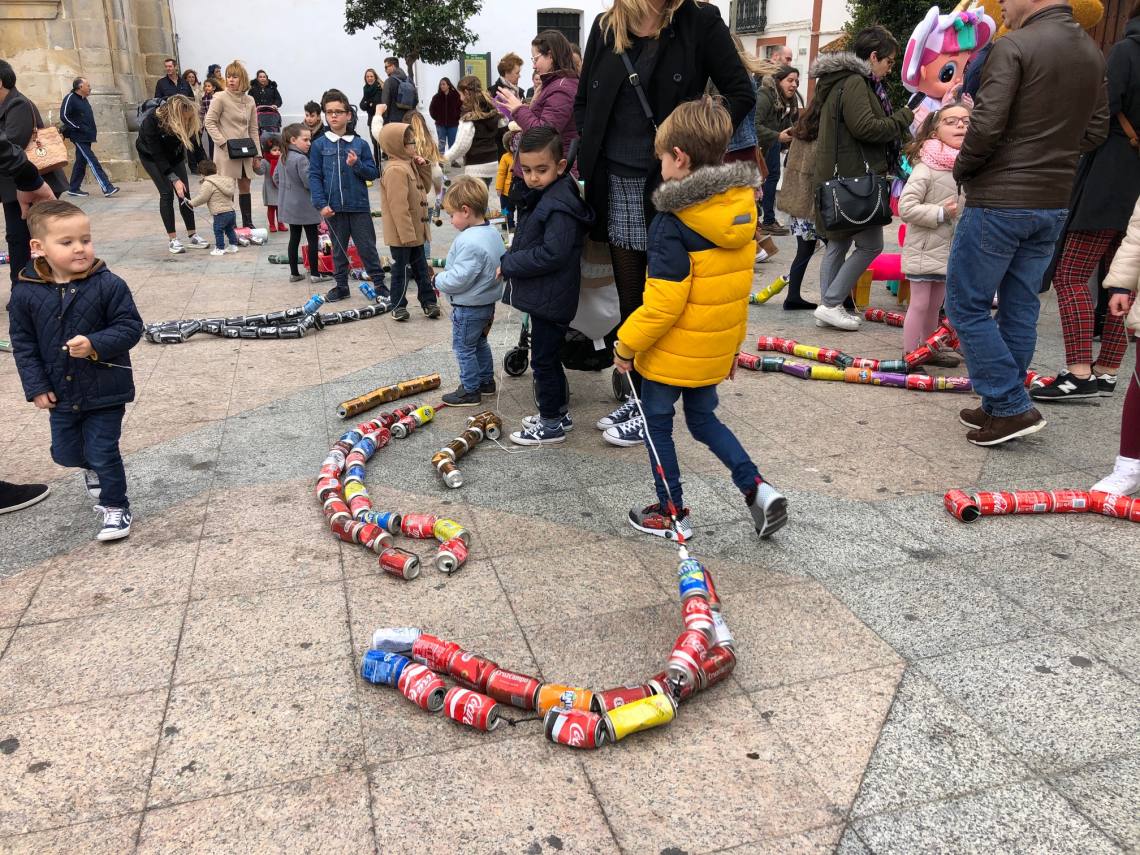 El arrastre de latas ha estado acompañado de música y animaciones de personajes infantiles.