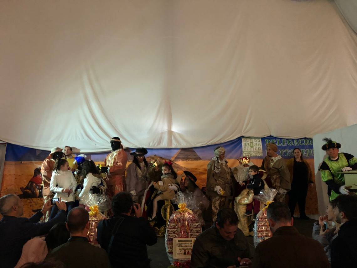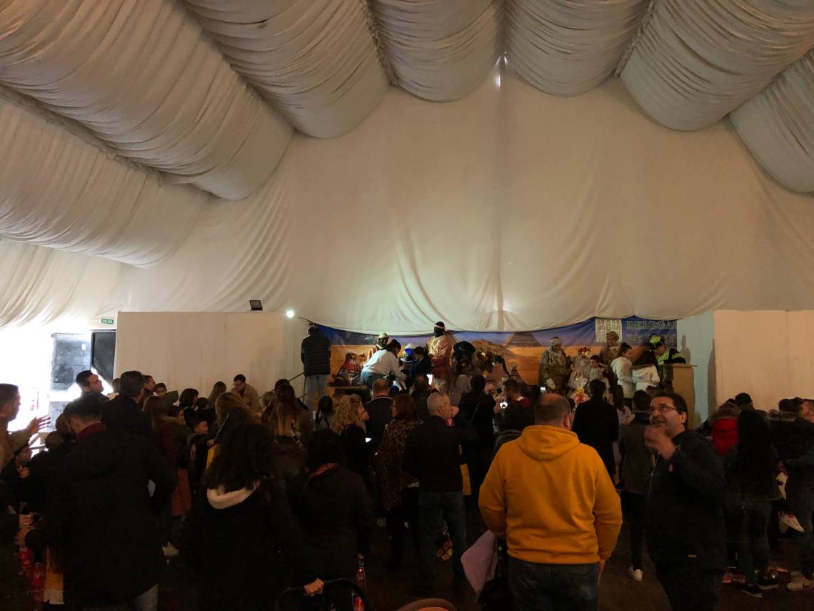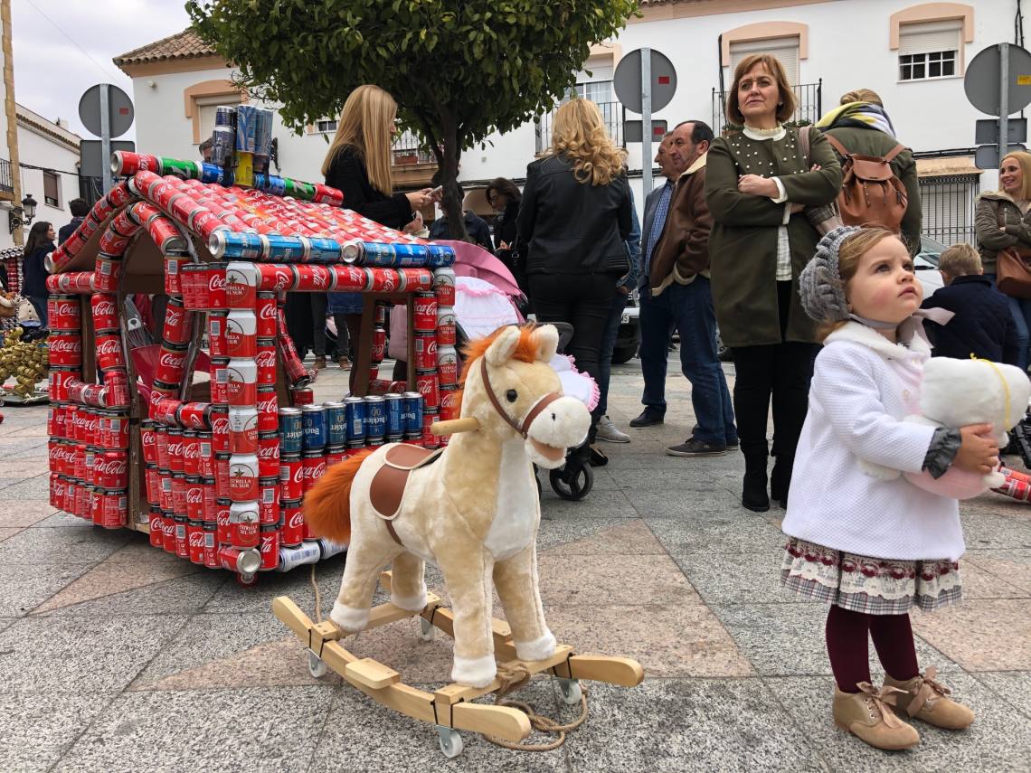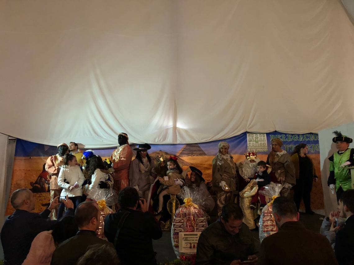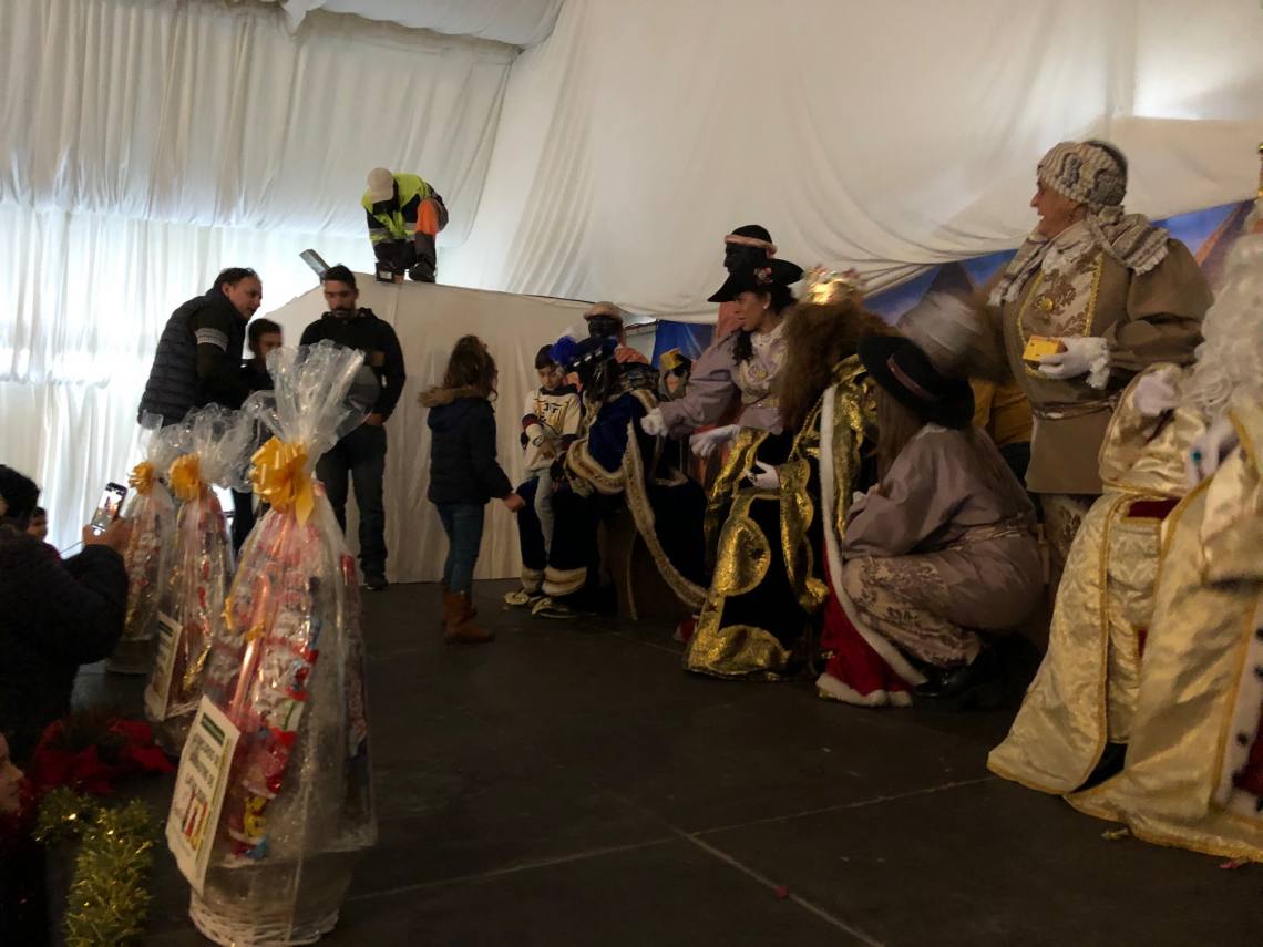 Luego los niños y niñas han arrastrado sus latas desde la Plaza de la Iglesia hasta el recinto ferial, donde luego los Reyes Magos han recibido las cartas de cada uno de los pequeños.