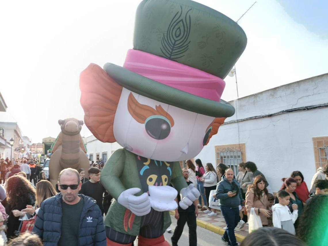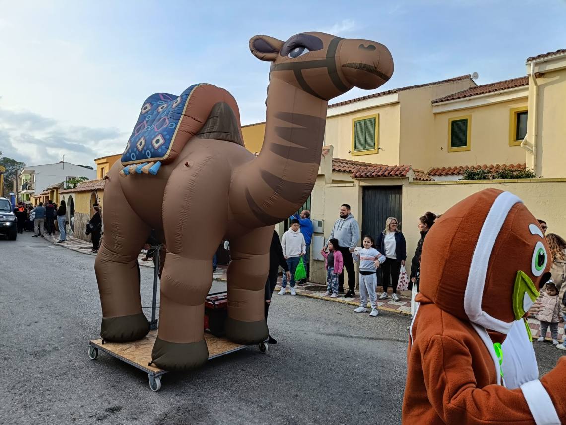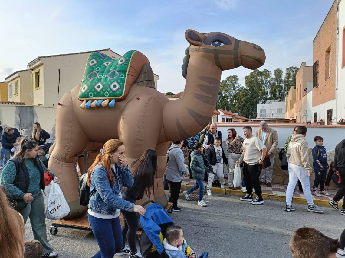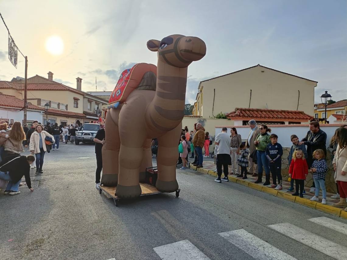 Tres carrozas han formado el cortejo de los Magos de Oriente, animaciones de camellos hinchables, personajes de dibujos animados y la música de una charanga.