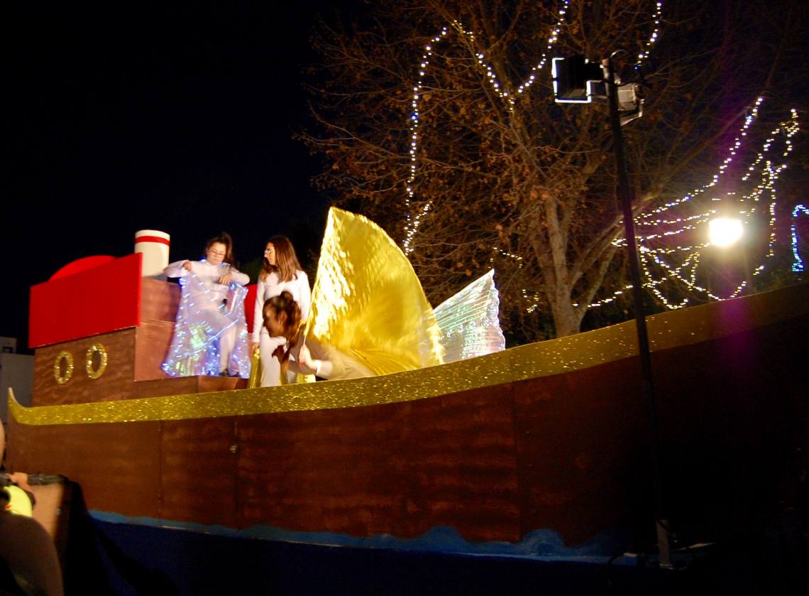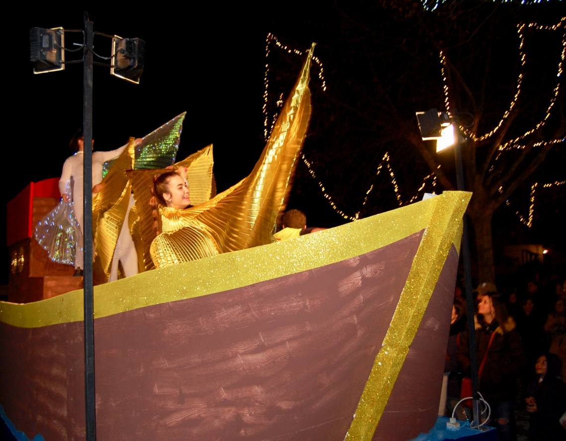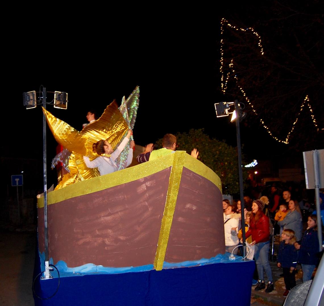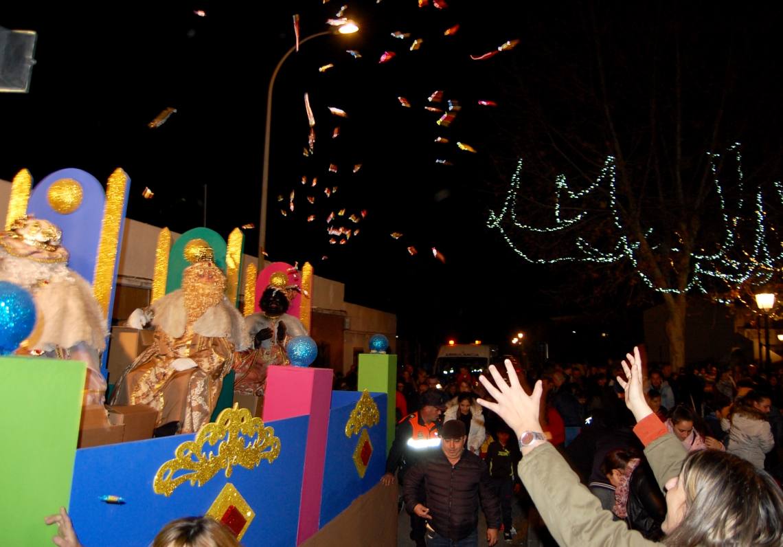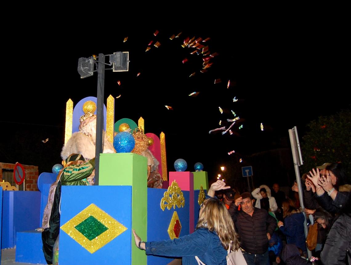 Luego, una gran Cabalgata de Reyes ha recorrido las principales calles del núcleo para regocijo de padres y niños, con dos carrozas y varias animaciones. En una primera carroza unas hadas con alas de luz daban la bienvenida a los pequeños y sus familias; y en la segunda carroza los tres magos de oriente, acompañados por sus pajes, llenaron las primeras horas de la noche de una gran lluvia de caramelos.