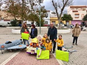 El presidente de la Junta de Distrito, José Antonio Gómez, y la Comisión de Fiestas hicieron entrega de un obsequio a las tres figuras de latas más ingeniosas del arrastre: un avión, un castillo de Frozen y un cocodrilo; y posteriormente ayudaron a sus Majestades en el encuentro con las familias de Palmones.