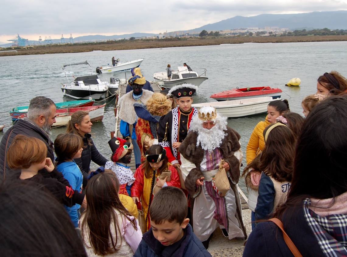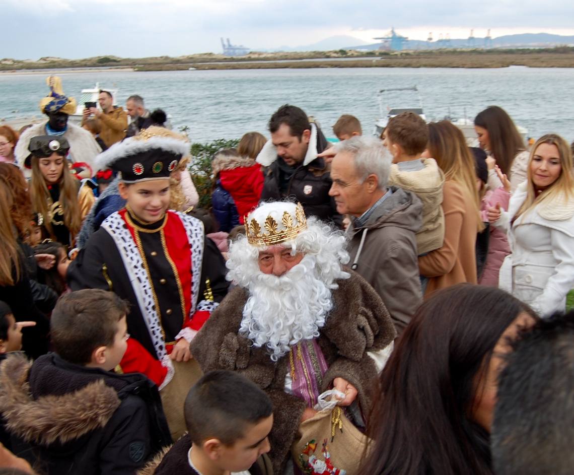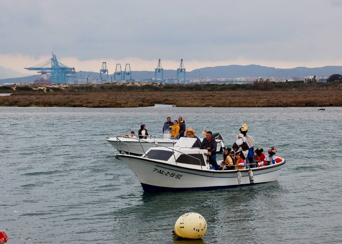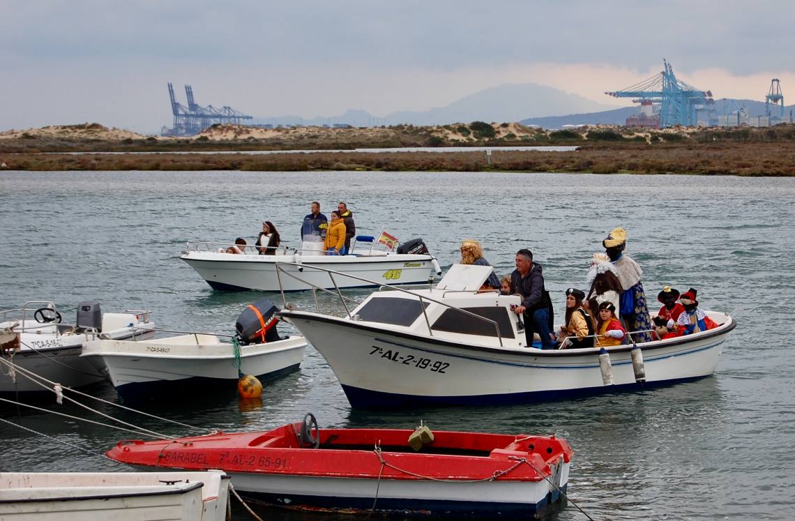 Los Reyes Magos de Oriente han llegado un año más a Palmones en una embarcación por el río Palmones, siendo recibidos en el Paseo Marítimo por centenares de niños y familias que previamente realizaron un estruendoso pasacalle por las principales calles del núcleo poblacional barreño.