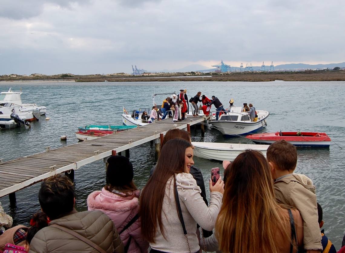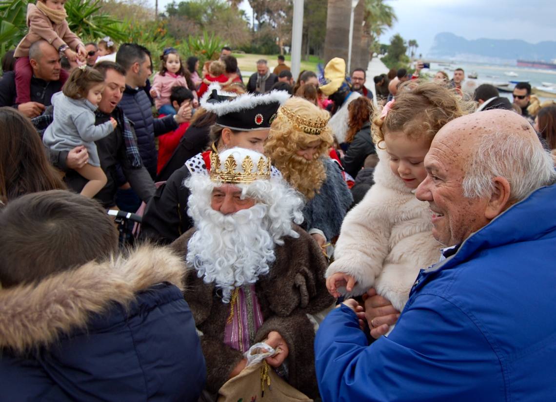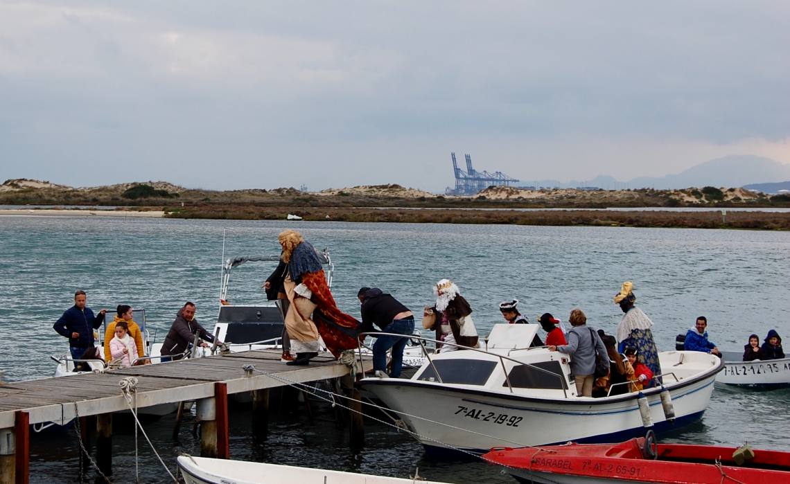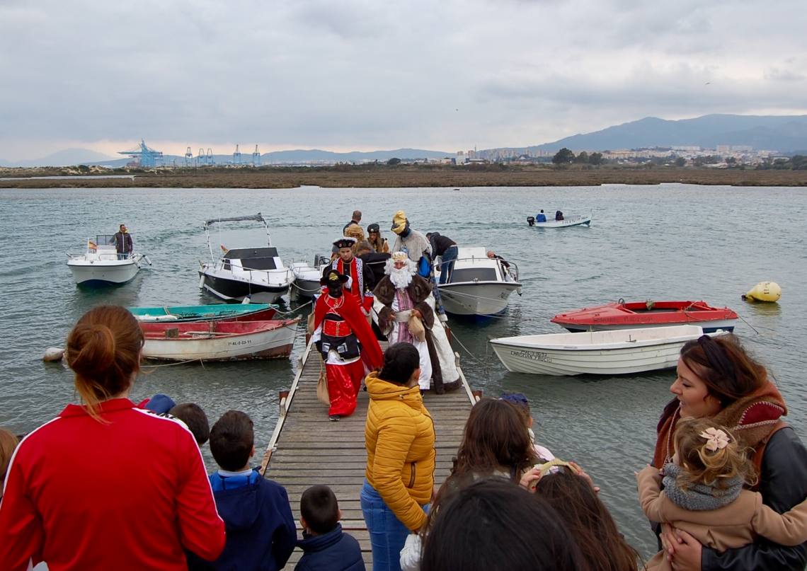 Los Reyes Magos de Oriente han llegado un año más a Palmones en una embarcación por el río Palmones, siendo recibidos en el Paseo Marítimo por centenares de niños y familias que previamente realizaron un estruendoso pasacalle por las principales calles del núcleo poblacional barreño.