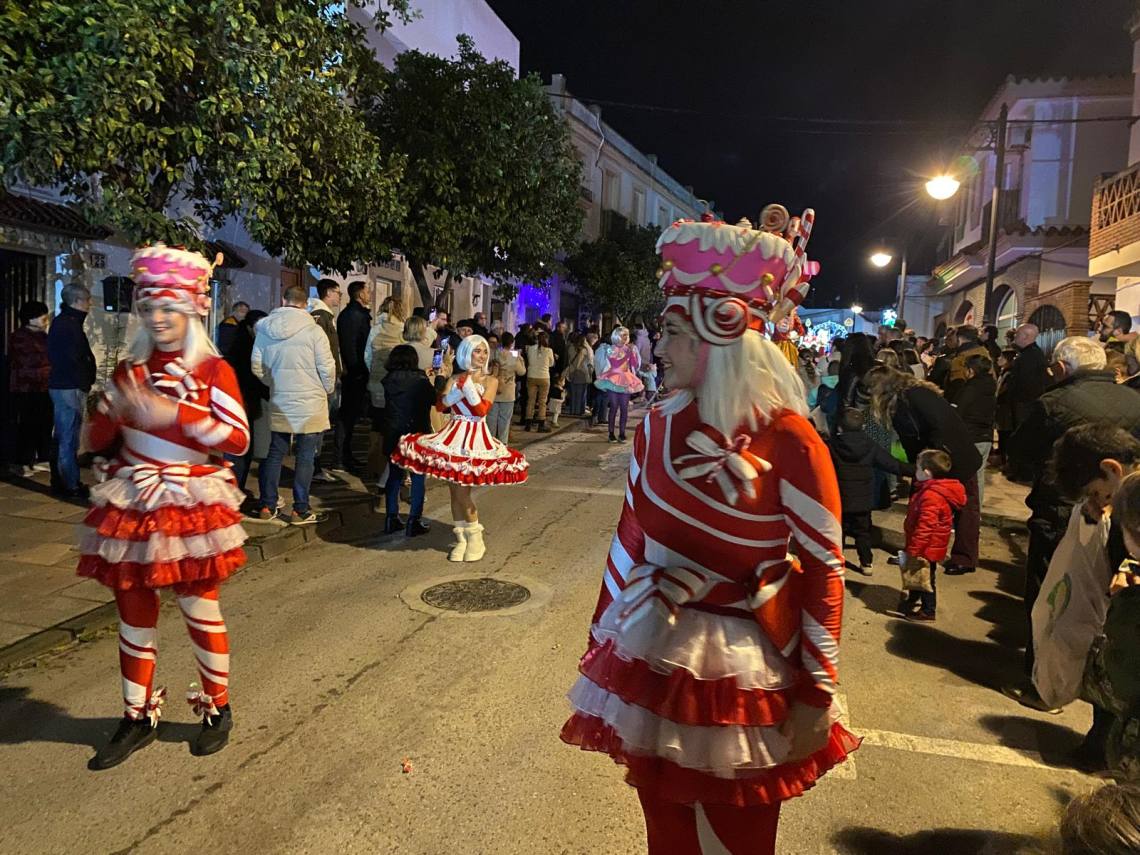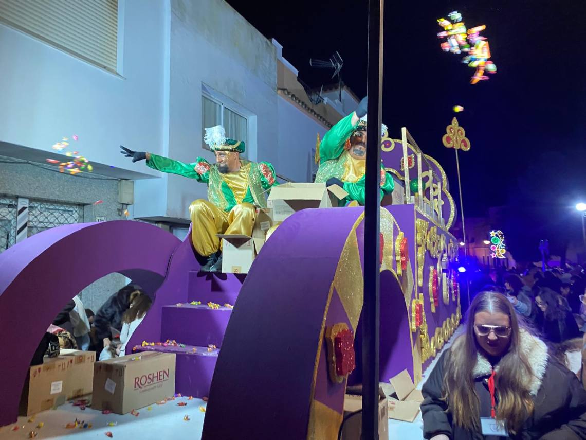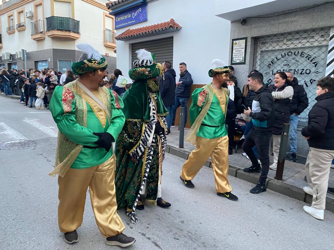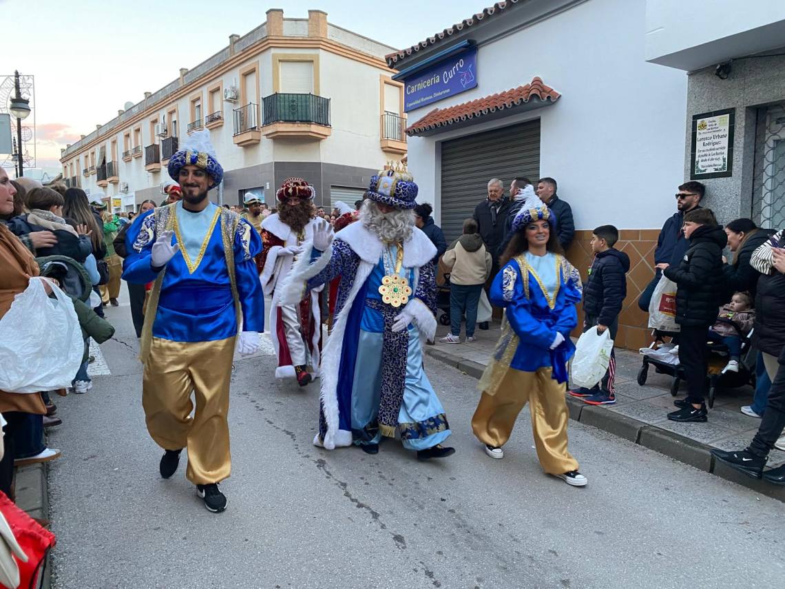 Melchor, Gaspar y Baltasar han iniciado la cabalgata en la barriada El Palmarilllo, recorriendo, a partir de ahí, algunas de las principales vías del casco urbano, como la avenida Alcalde Juan Rodríguez, el entorno del cuartel de la Guardia Civil, la avenida Pablo Picasso y el Paseo de la Constitución. A lo largo del itinerario, la comitiva real ha repartido caramelos y ha contado con animación y música, creando un ambiente festivo y participativo, especialmente entre el público infantil.