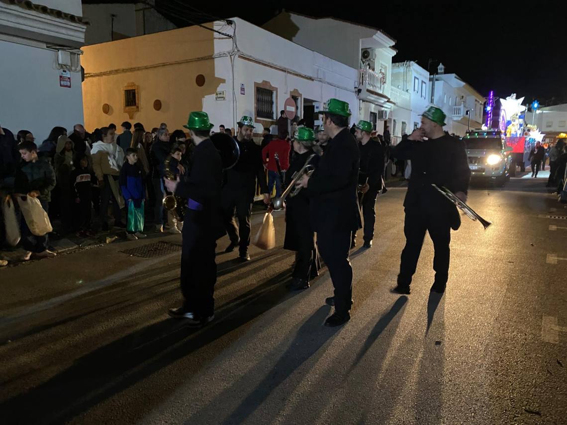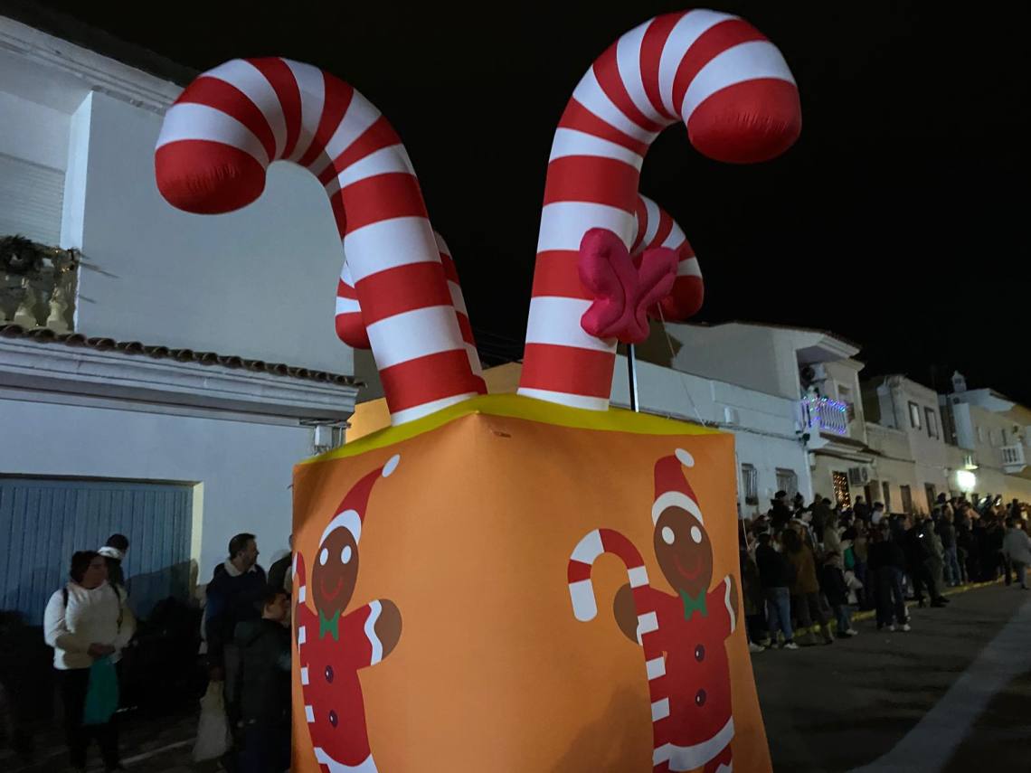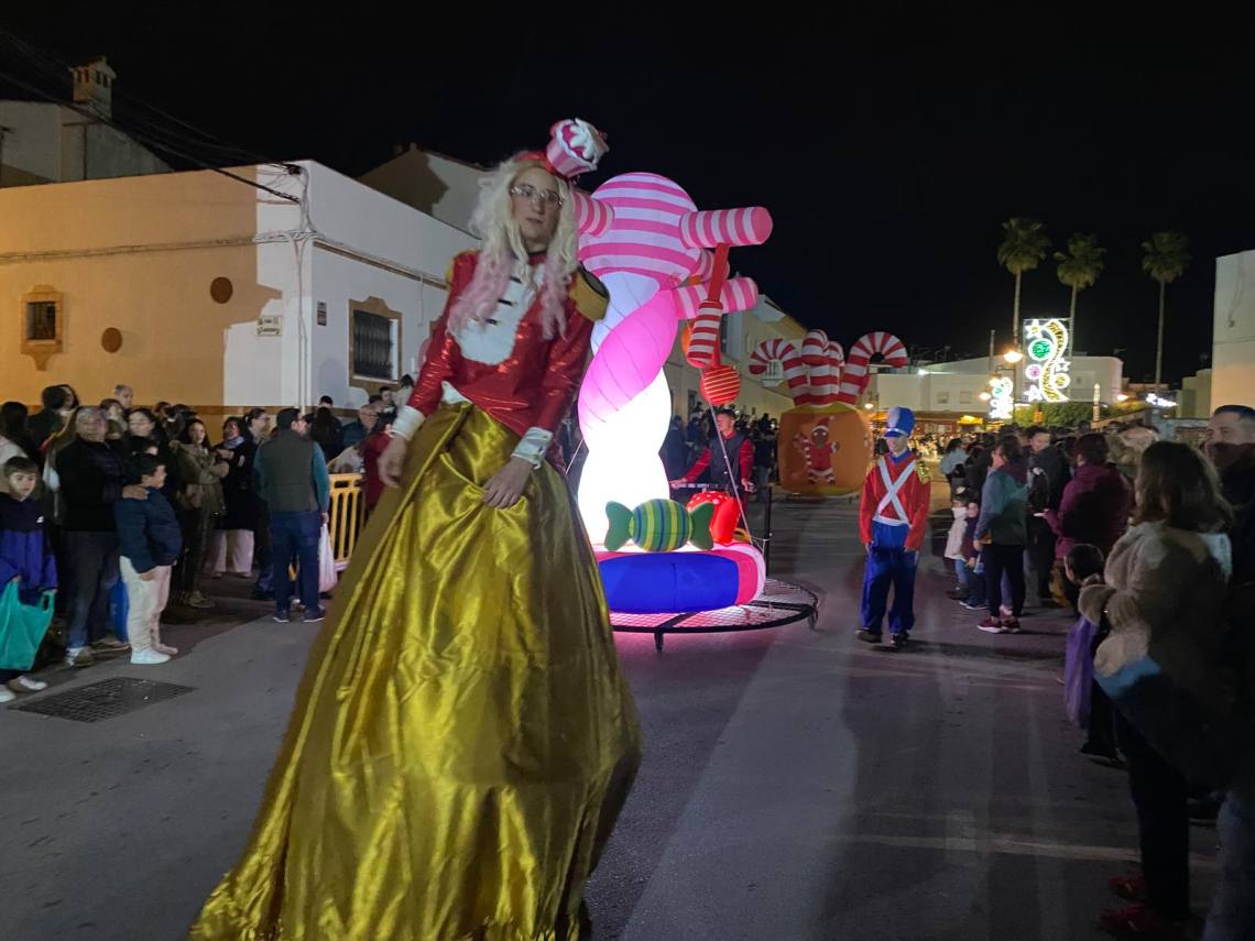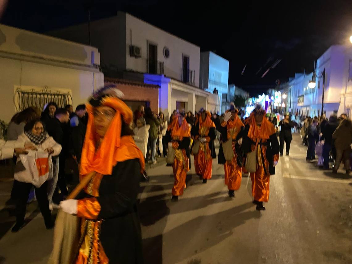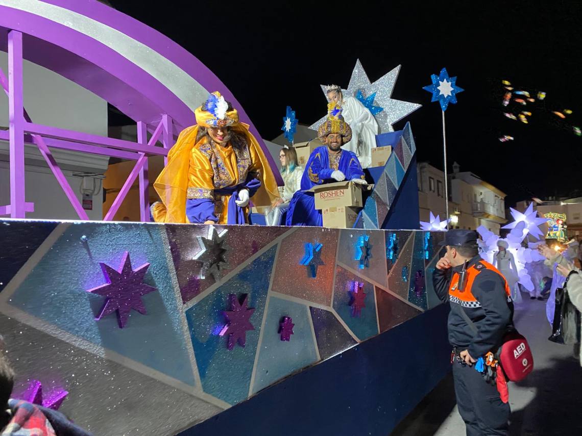 Melchor, Gaspar y Baltasar han iniciado la cabalgata en la barriada El Palmarilllo, recorriendo, a partir de ahí, algunas de las principales vías del casco urbano, como la avenida Alcalde Juan Rodríguez, el entorno del cuartel de la Guardia Civil, la avenida Pablo Picasso y el Paseo de la Constitución. A lo largo del itinerario, la comitiva real ha repartido caramelos y ha contado con animación y música, creando un ambiente festivo y participativo, especialmente entre el público infantil.