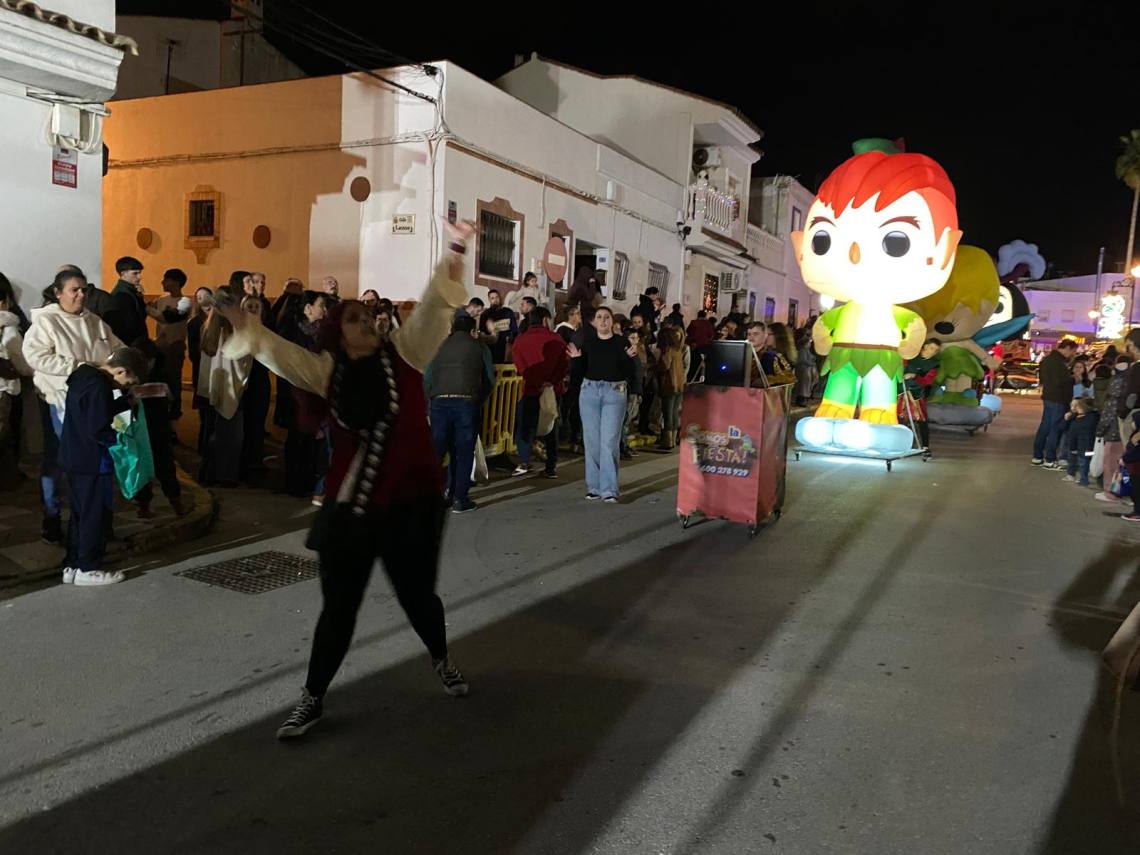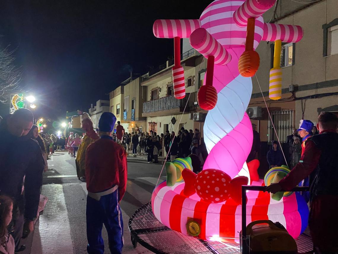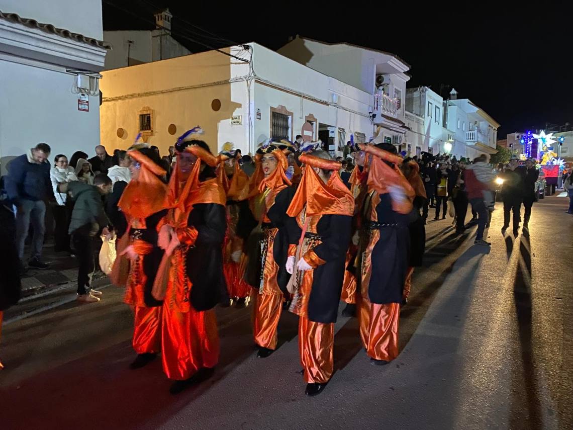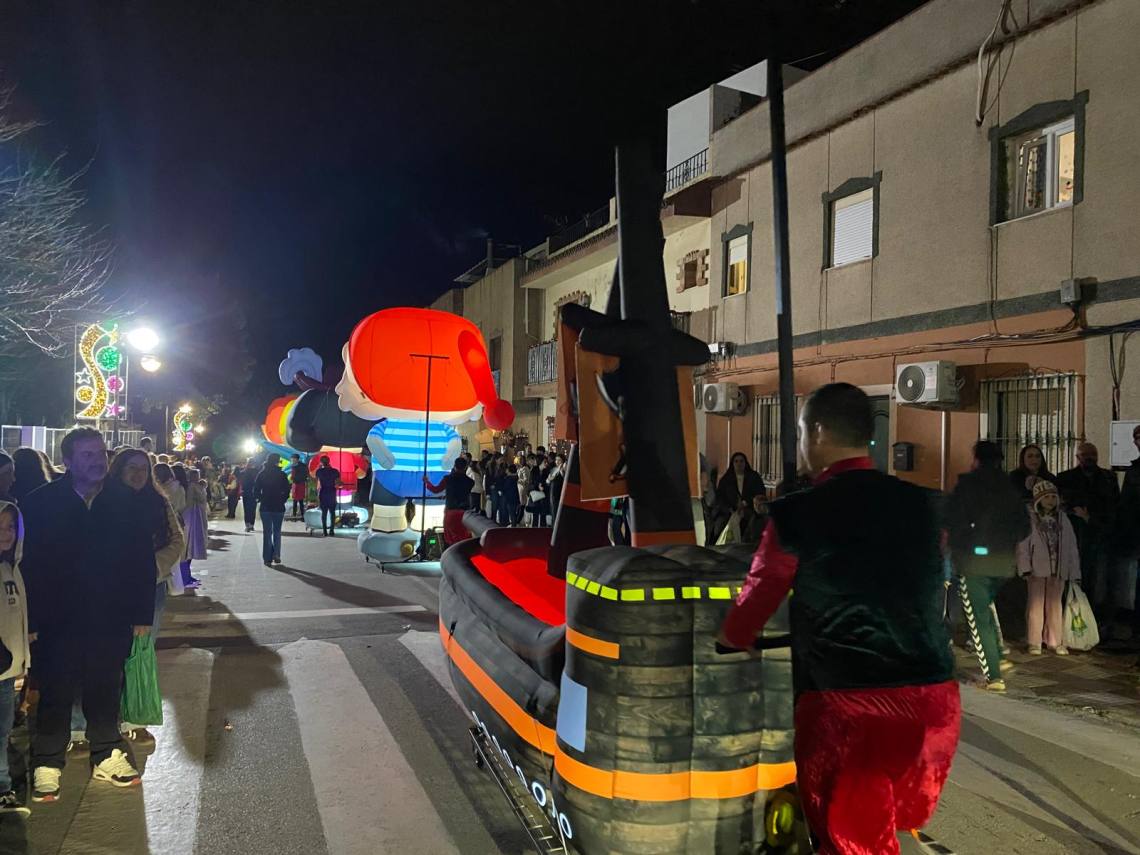 Melchor, Gaspar y Baltasar han iniciado la cabalgata en la barriada El Palmarilllo, recorriendo, a partir de ahí, algunas de las principales vías del casco urbano, como la avenida Alcalde Juan Rodríguez, el entorno del cuartel de la Guardia Civil, la avenida Pablo Picasso y el Paseo de la Constitución. A lo largo del itinerario, la comitiva real ha repartido caramelos y ha contado con animación y música, creando un ambiente festivo y participativo, especialmente entre el público infantil.