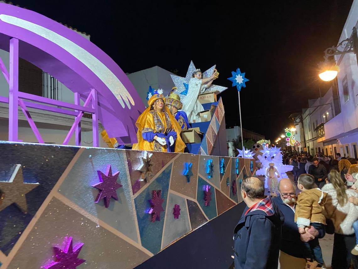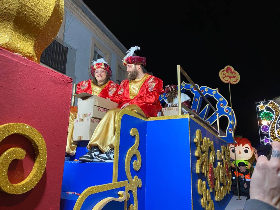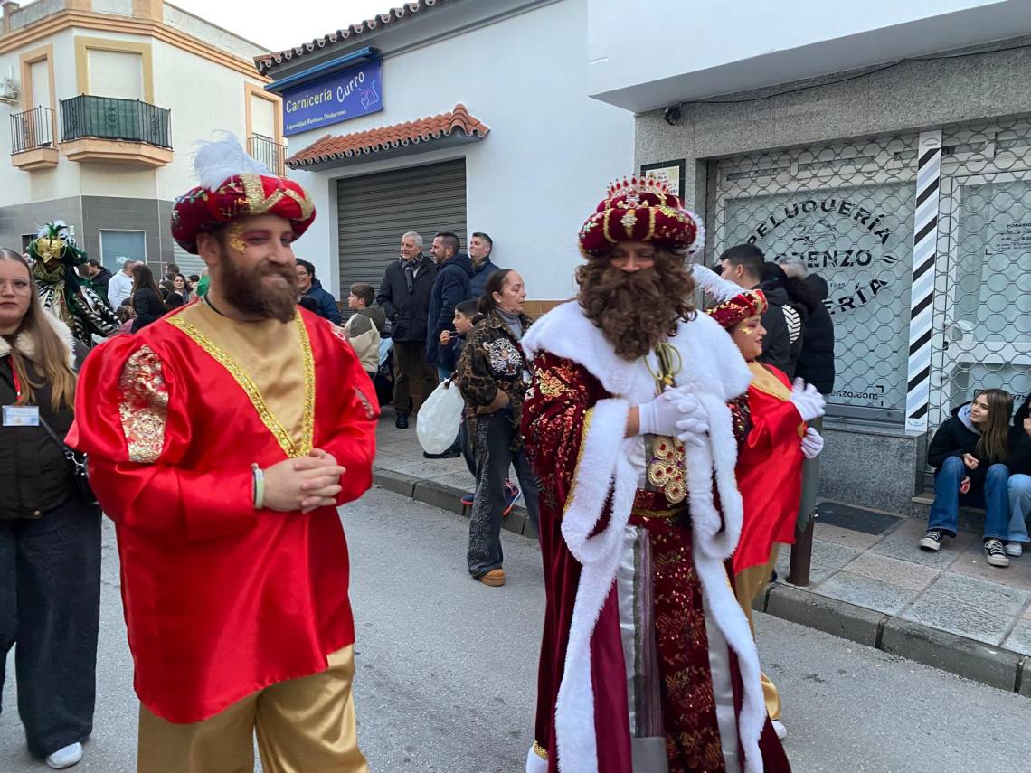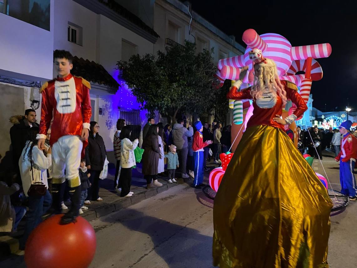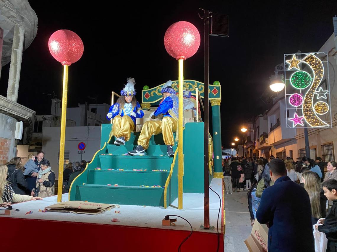 Melchor, Gaspar y Baltasar han iniciado la cabalgata en la barriada El Palmarilllo, recorriendo, a partir de ahí, algunas de las principales vías del casco urbano, como la avenida Alcalde Juan Rodríguez, el entorno del cuartel de la Guardia Civil, la avenida Pablo Picasso y el Paseo de la Constitución. A lo largo del itinerario, la comitiva real ha repartido caramelos y ha contado con animación y música, creando un ambiente festivo y participativo, especialmente entre el público infantil.
