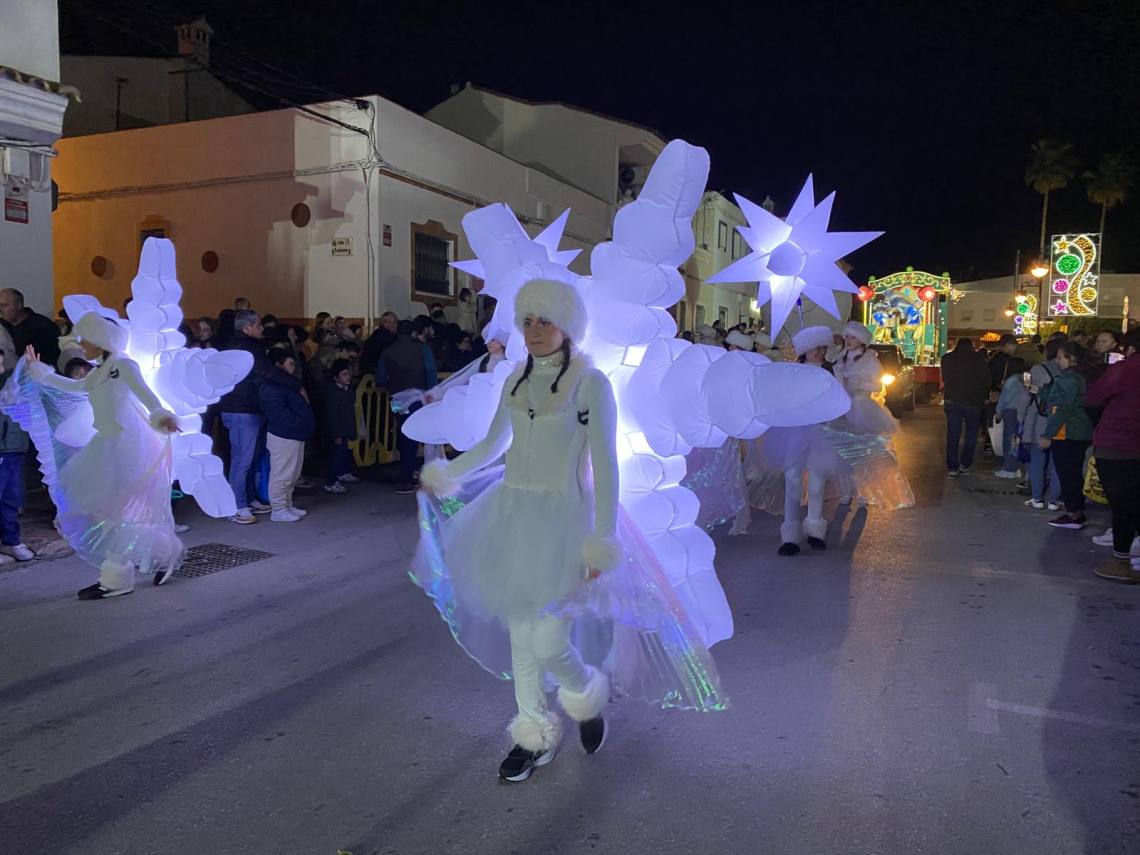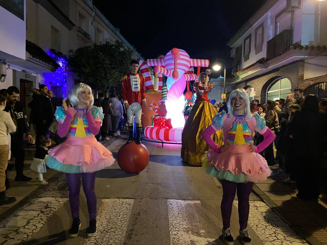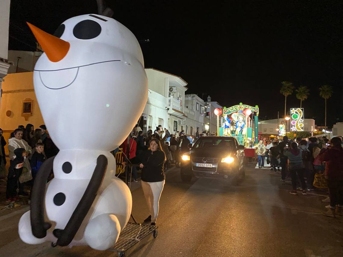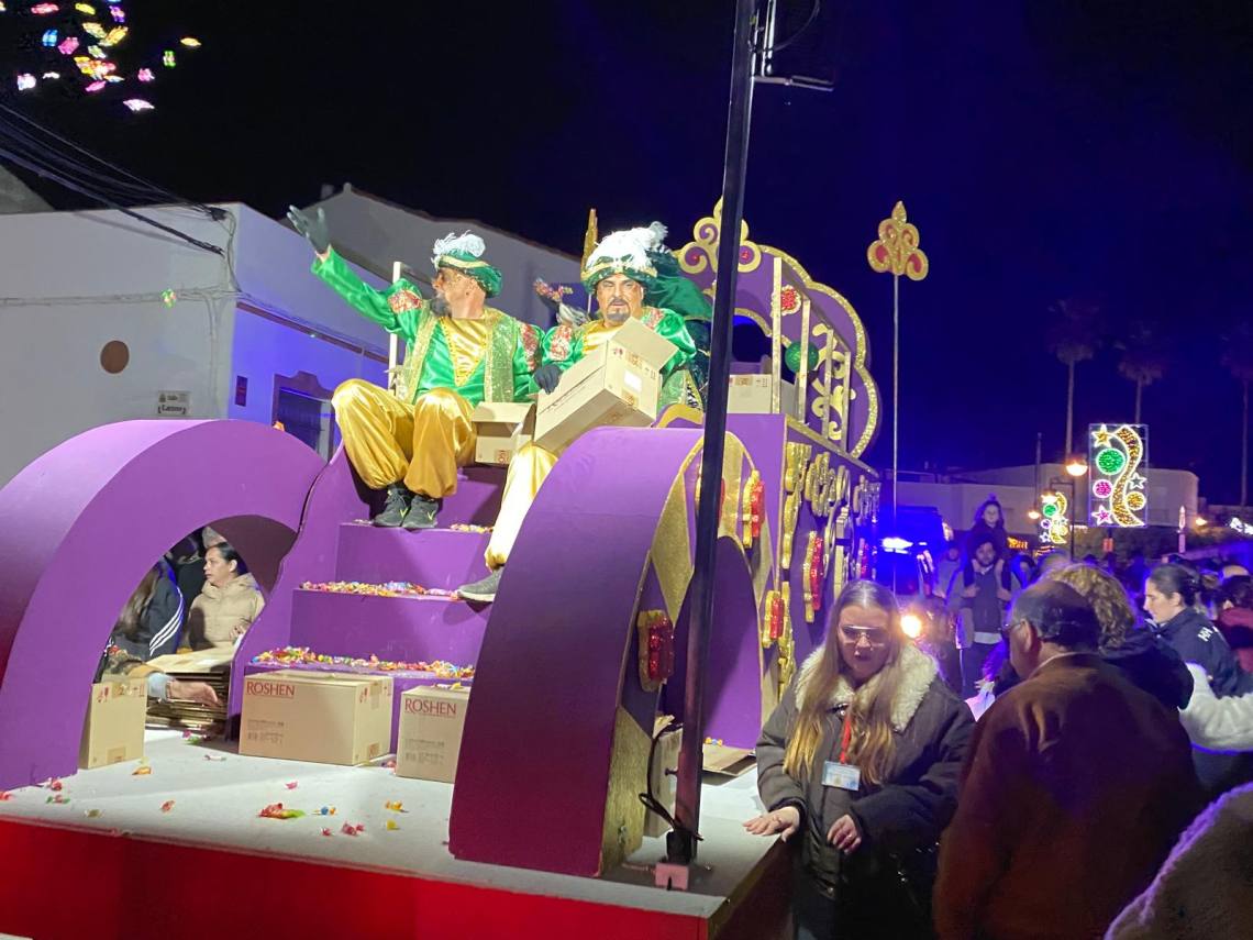 Melchor, Gaspar y Baltasar han iniciado la cabalgata en la barriada El Palmarilllo, recorriendo, a partir de ahí, algunas de las principales vías del casco urbano, como la avenida Alcalde Juan Rodríguez, el entorno del cuartel de la Guardia Civil, la avenida Pablo Picasso y el Paseo de la Constitución. A lo largo del itinerario, la comitiva real ha repartido caramelos y ha contado con animación y música, creando un ambiente festivo y participativo, especialmente entre el público infantil.