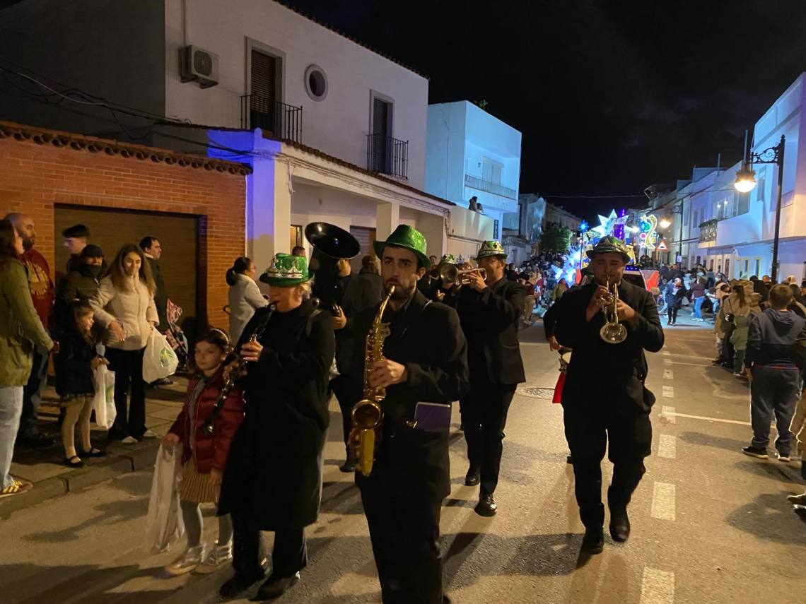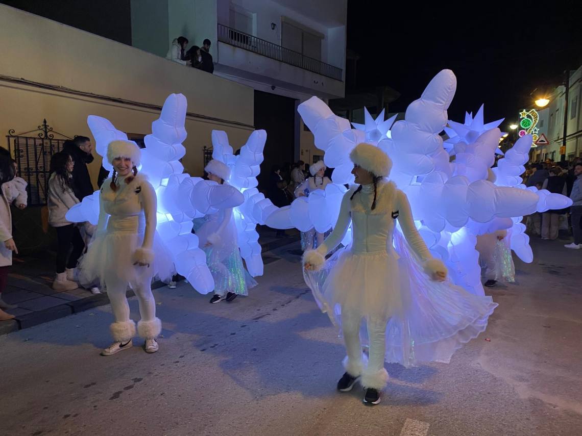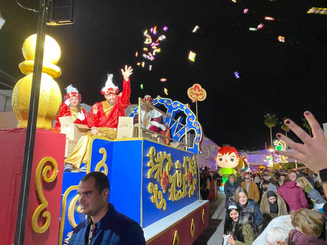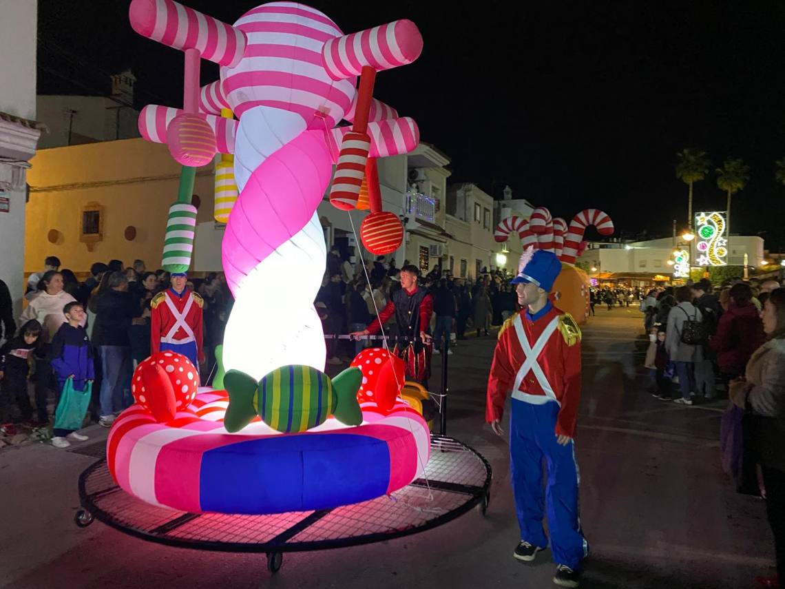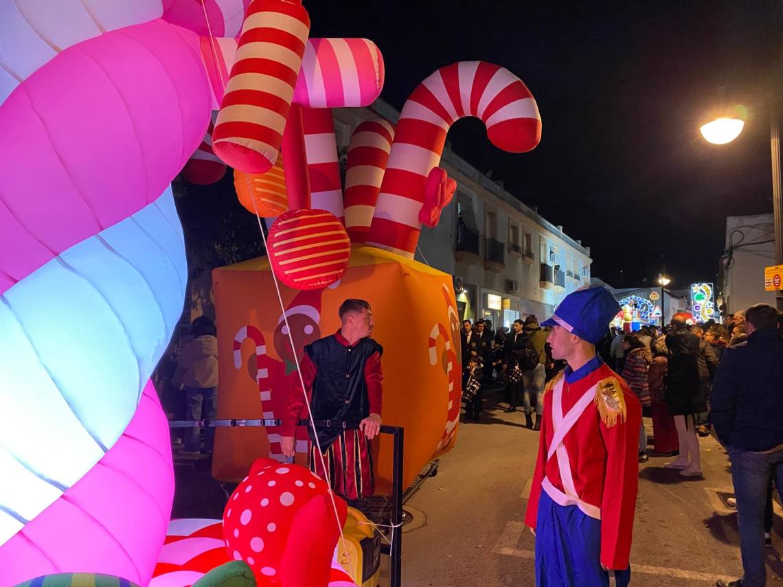 Melchor, Gaspar y Baltasar han iniciado la cabalgata en la barriada El Palmarilllo, recorriendo, a partir de ahí, algunas de las principales vías del casco urbano, como la avenida Alcalde Juan Rodríguez, el entorno del cuartel de la Guardia Civil, la avenida Pablo Picasso y el Paseo de la Constitución. A lo largo del itinerario, la comitiva real ha repartido caramelos y ha contado con animación y música, creando un ambiente festivo y participativo, especialmente entre el público infantil.