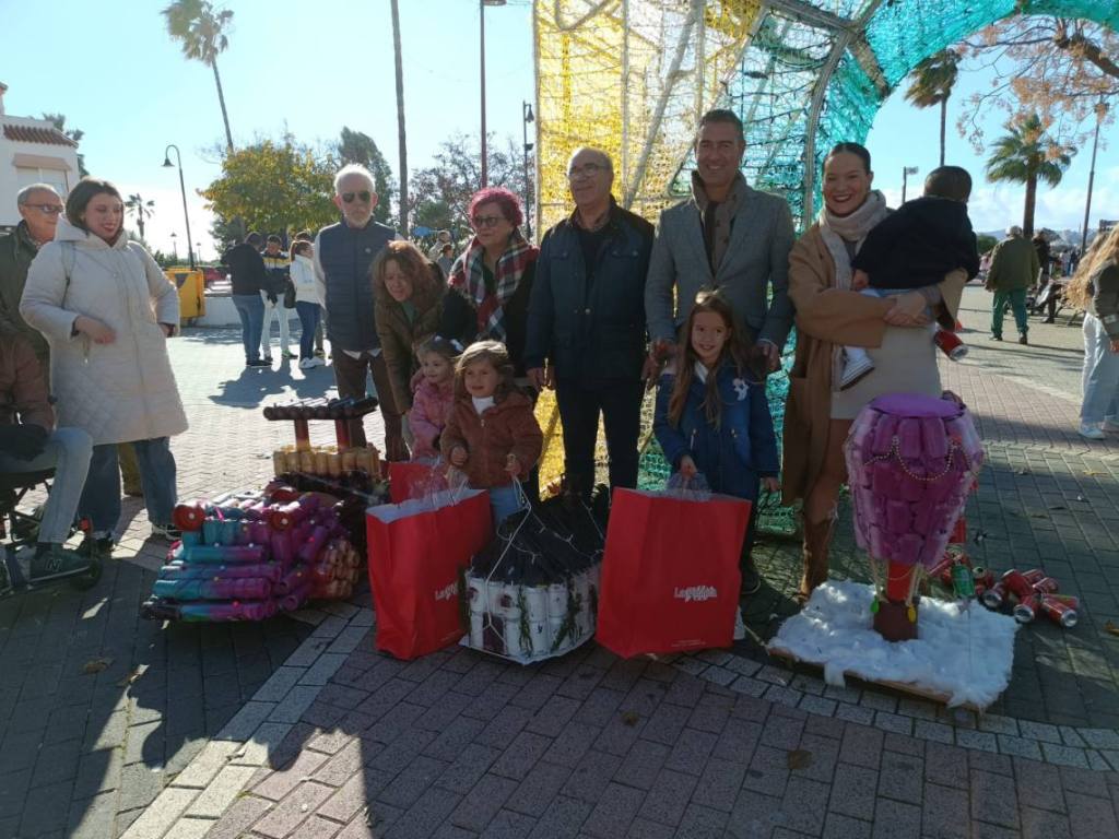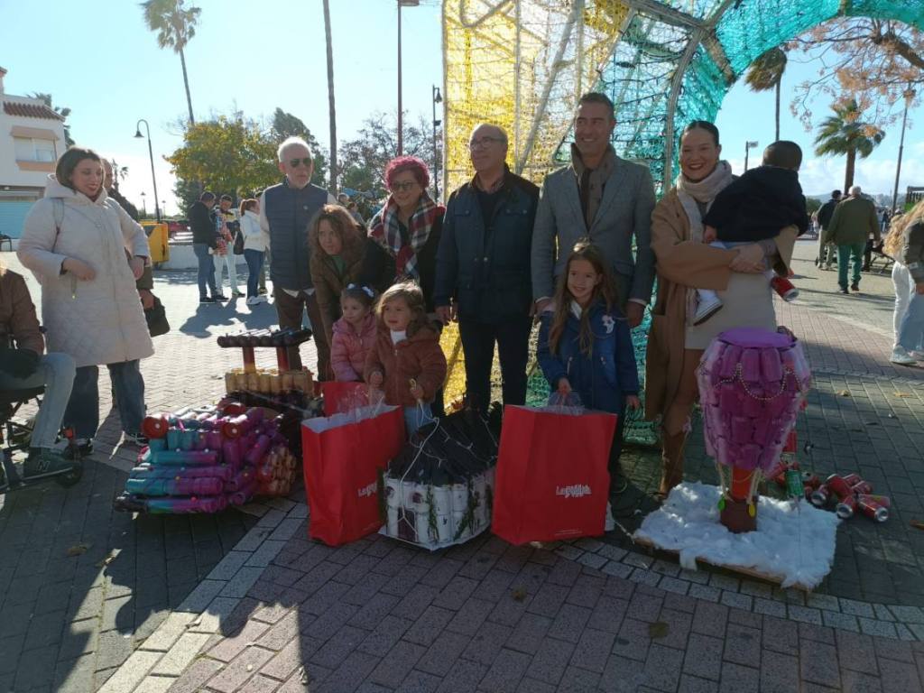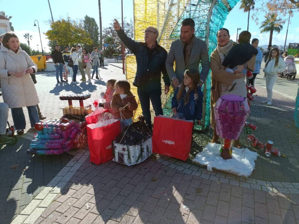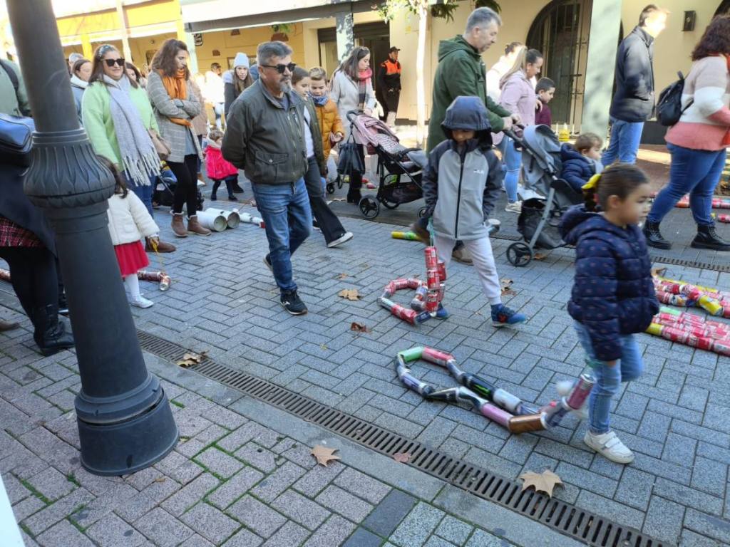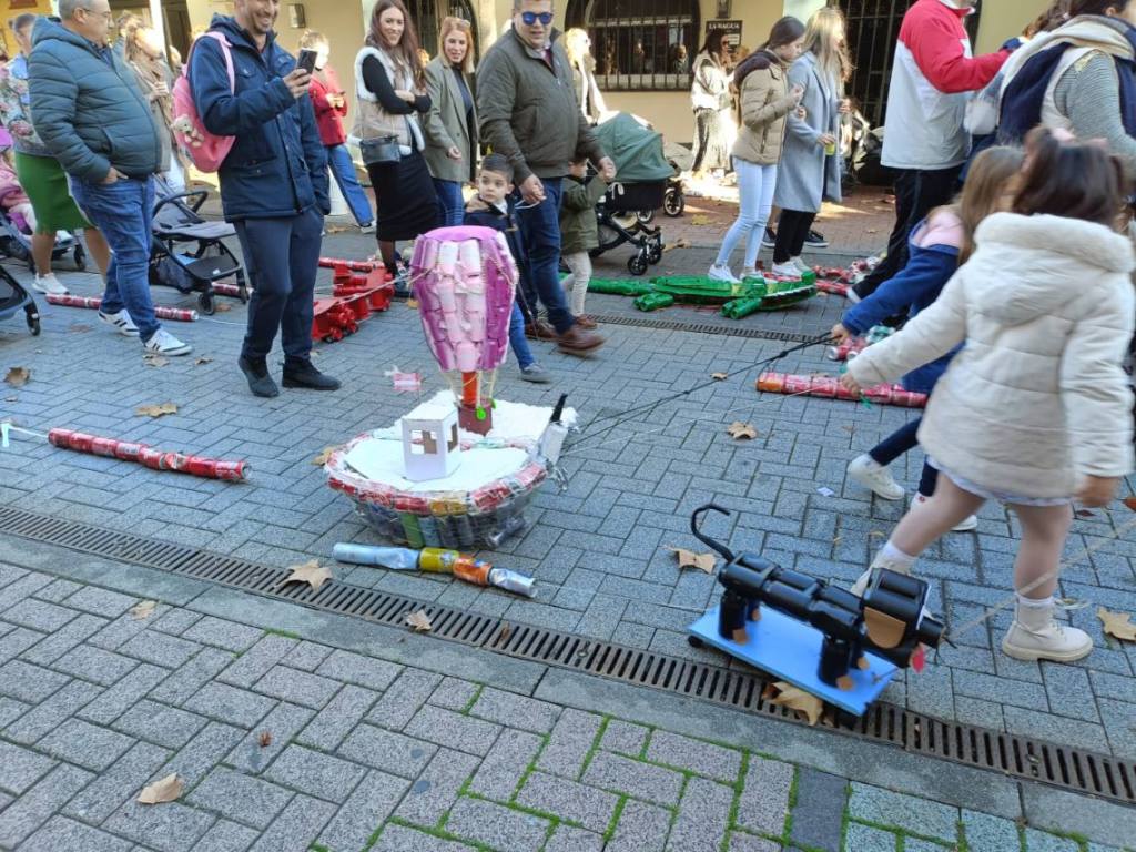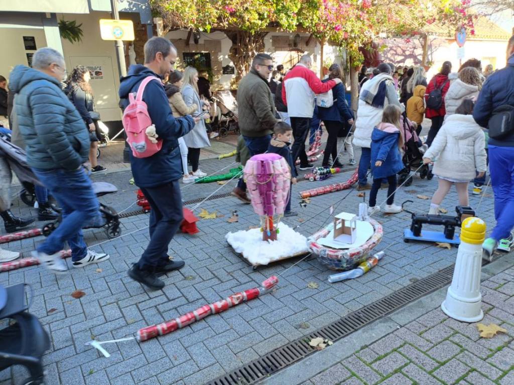 Esculturas de latas en forma de coches o de caracol han sido algunas de las figuras que han paseado junto a sus familias los cientos de niños y niñas que se han dado cita esta mañana en Palmones.