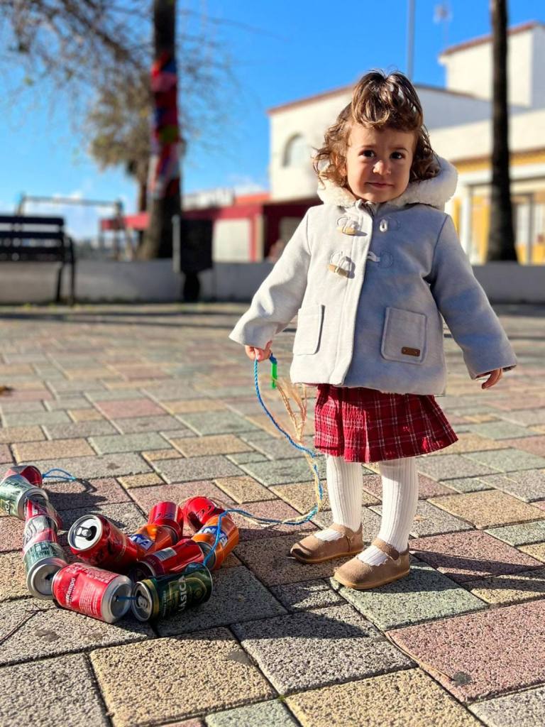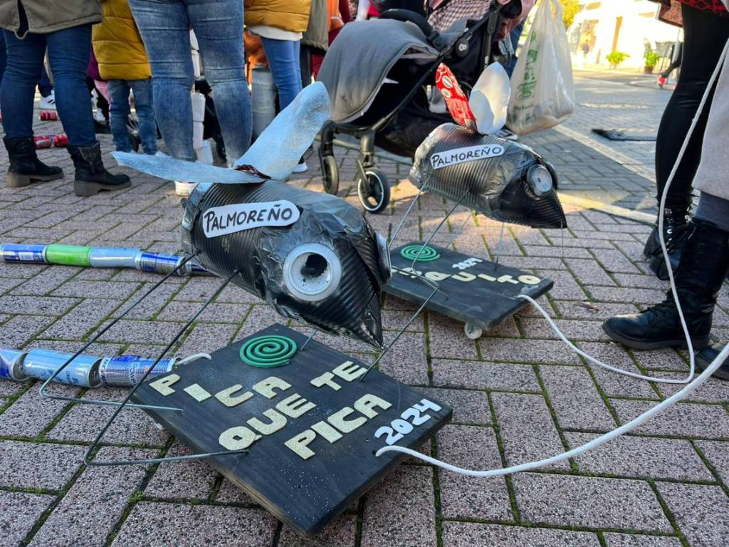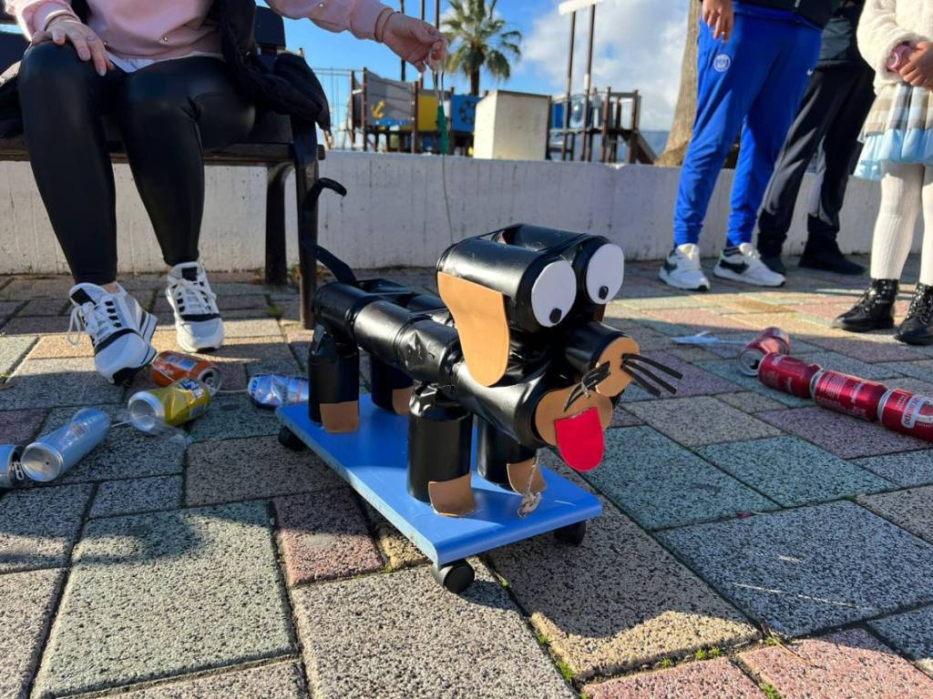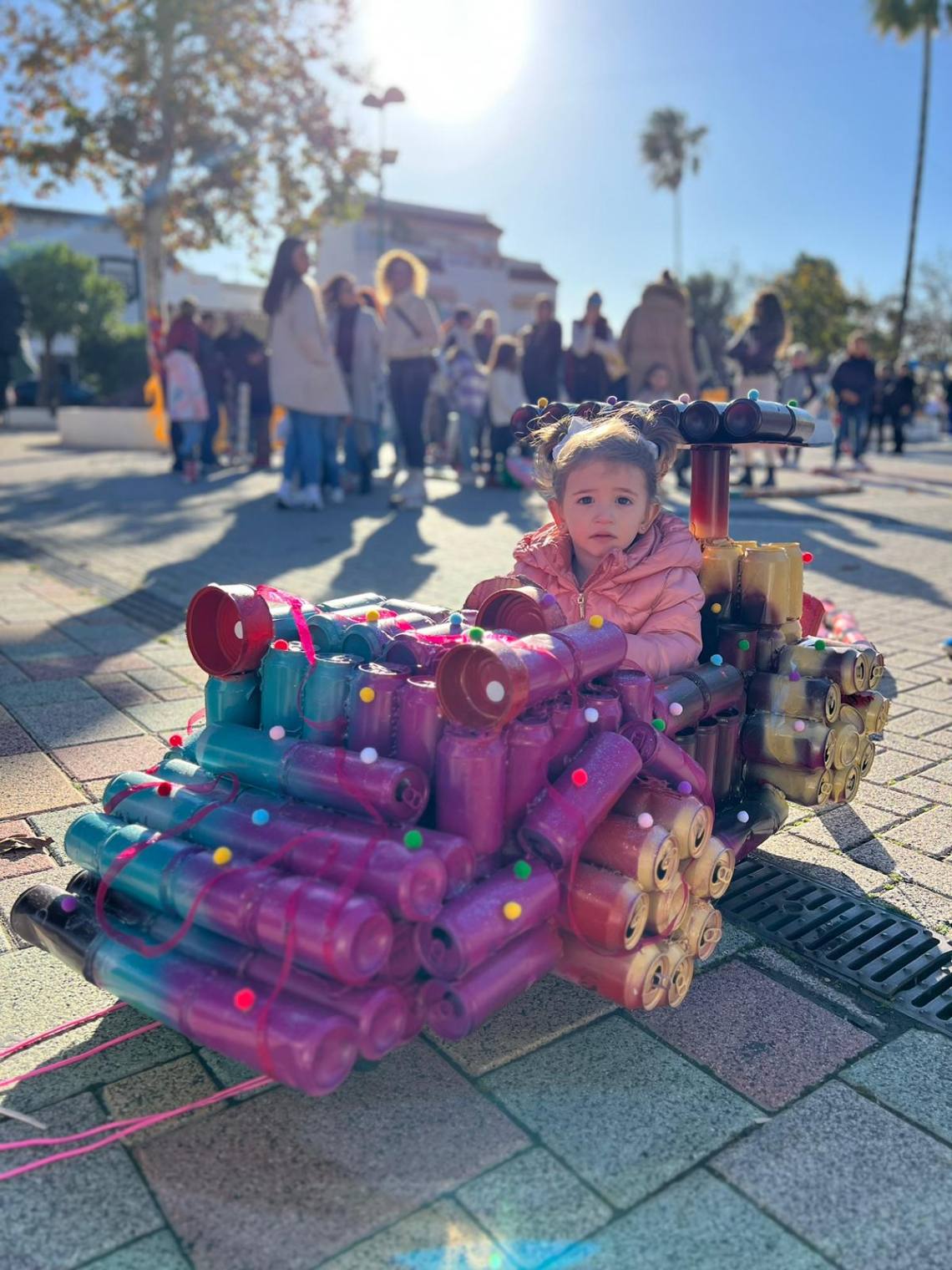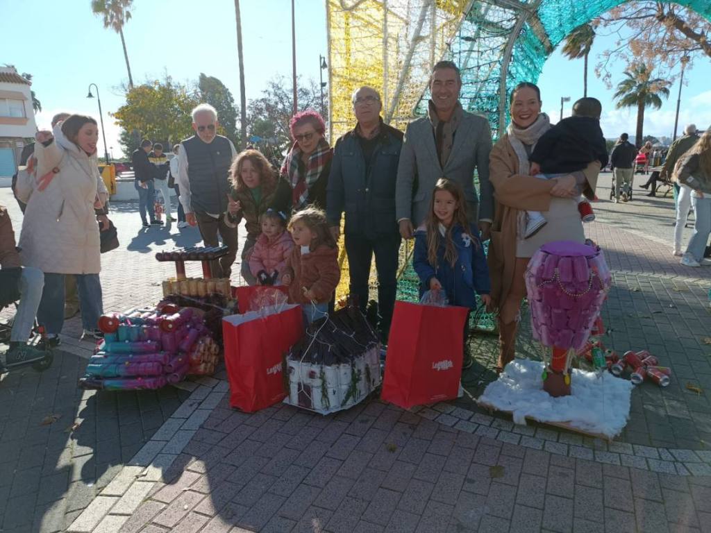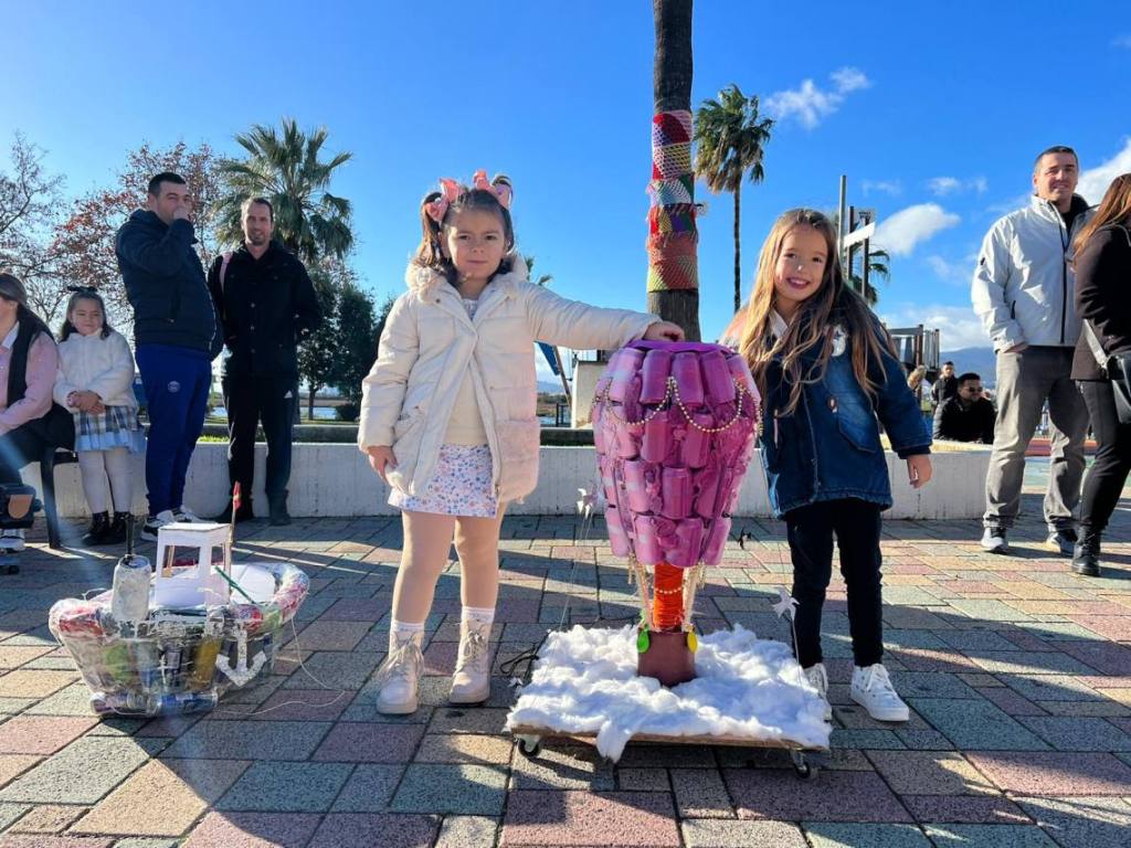 Esculturas de latas en forma de coches o de caracol han sido algunas de las figuras que han paseado junto a sus familias los cientos de niños y niñas que se han dado cita esta mañana en Palmones.
