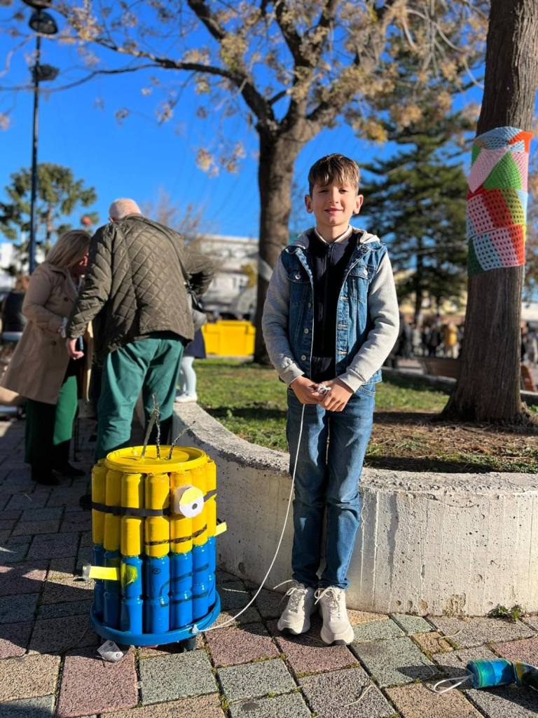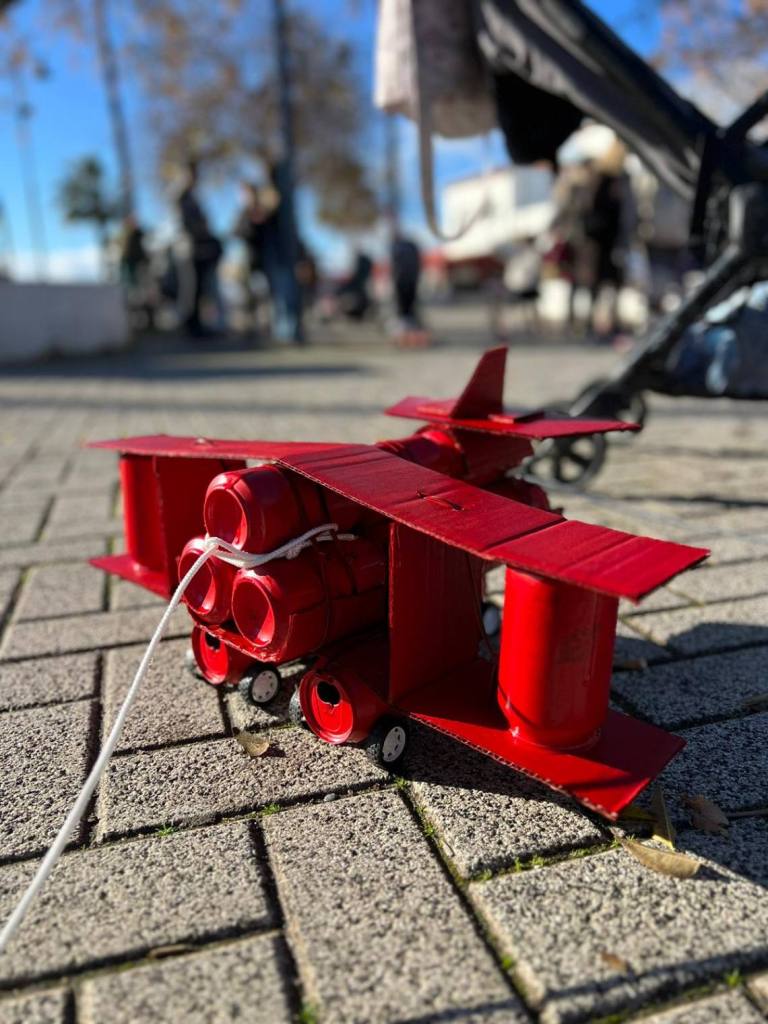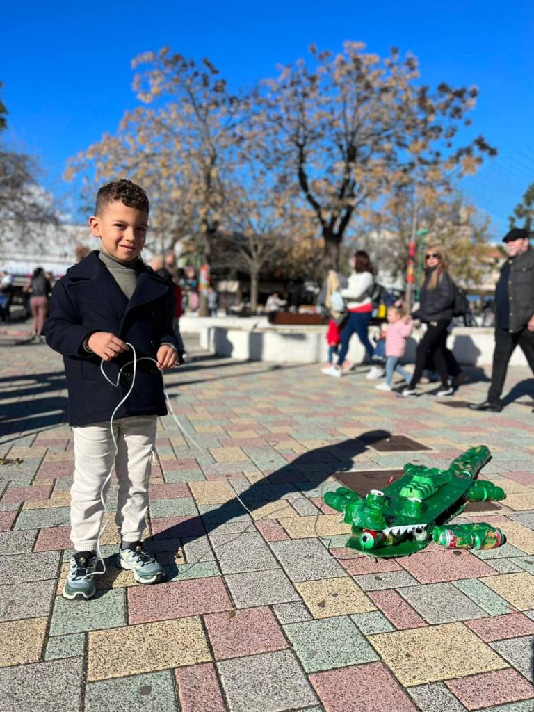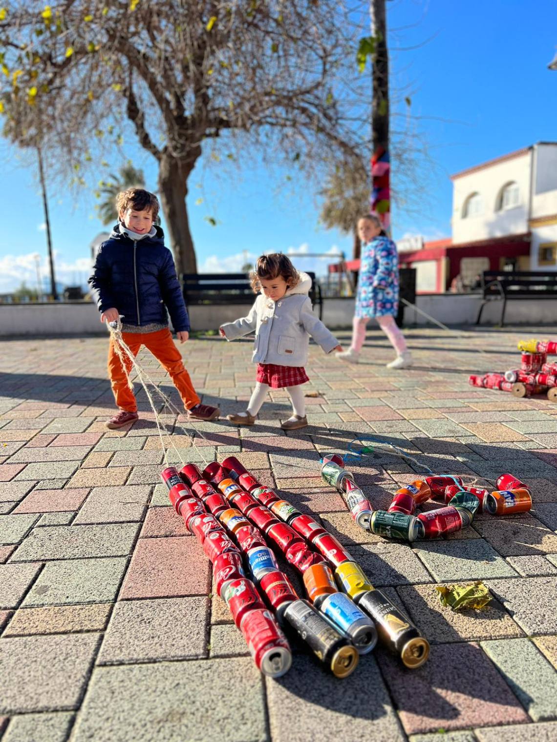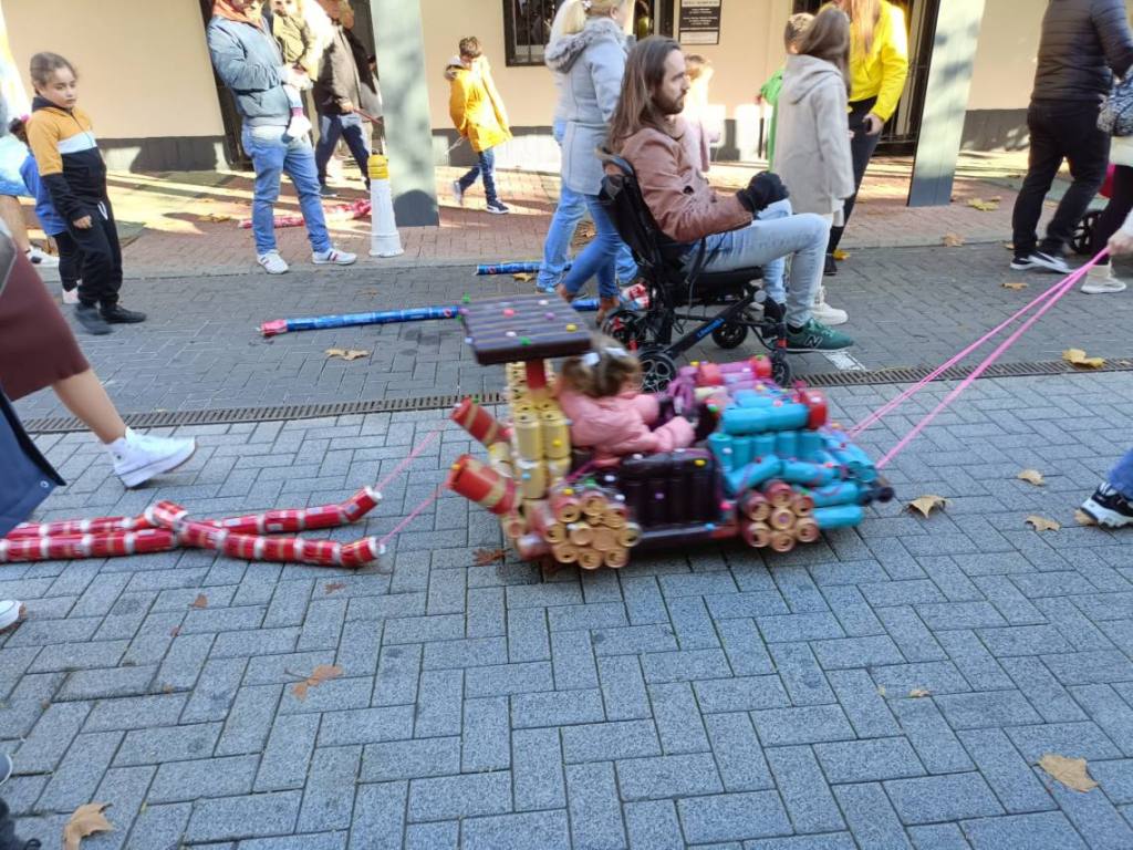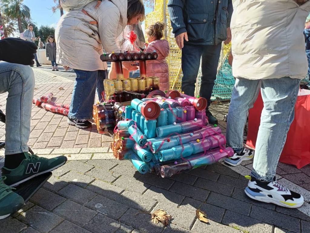 Esculturas de latas en forma de coches o de caracol han sido algunas de las figuras que han paseado junto a sus familias los cientos de niños y niñas que se han dado cita esta mañana en Palmones.