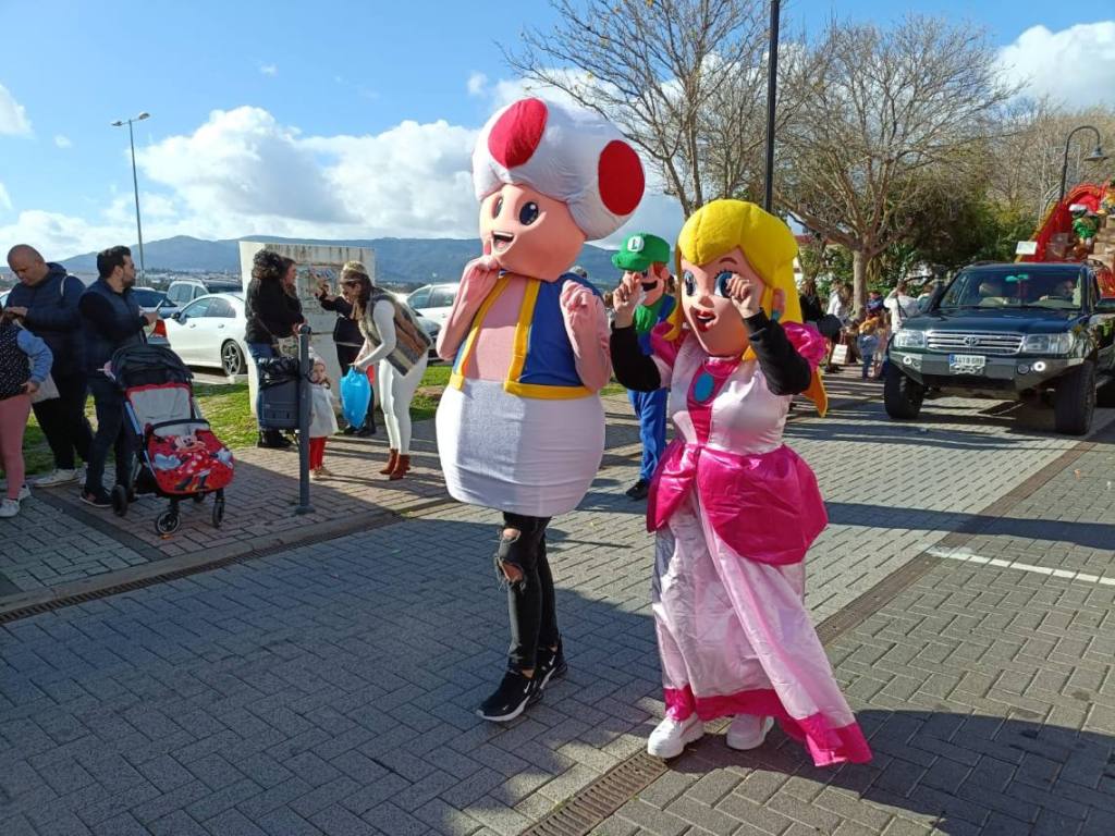 Sobre las doce y media del mediodía salía una cabalgata de mucho colorido y música, hasta cuatro carrozas han formado el cortejo de los Magos de Oriente, todo acompañado de animaciones de personajes de dibujos animados, princesas y un gran ambiente.