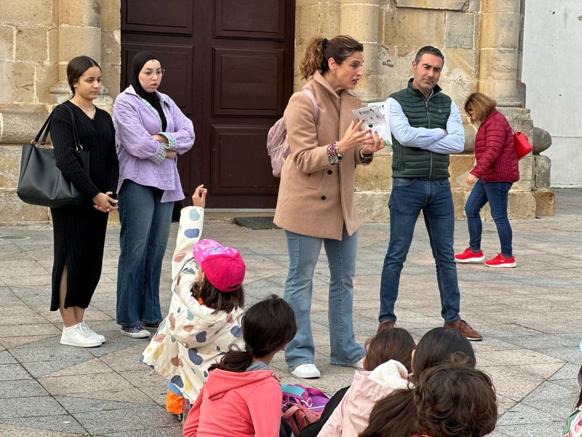 Los alumnos están guiados por la trabajadora municipal de la delegación Sandra Moreno, quien les va explicando los lugares y edificios más emblemáticos, además de cuestiones sobre la historia de Los Barrios.