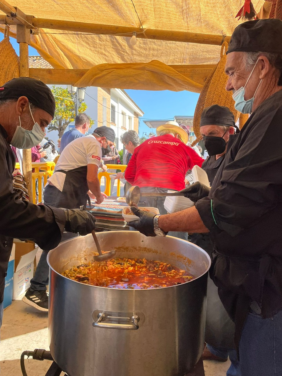 El Paseo de la Constitución ha acogido este domingo la última jornada del Mercado de Ibéricos y en la que se han degustado más de 600 raciones entre potaje de tagarninas y migas, unos 100 kilos en total de comida. Todo gracias a la elaboración y el trabajo conjunto de la Peña Cultural La Tagarnina y la Asociación META Andalucía y la colaboración del Ayuntamiento barreño.