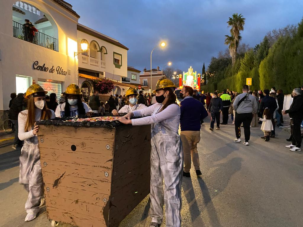 Tal y como estaba previsto, la cabalgata de los Reyes Magos de Oriente, formada por tres carrozas engalanadas, así como diferentes figuraciones y animaciones, la banda de música ‘Maestro Infantes’ y el oportuno dispositivo de seguridad integrado por la Policía Local y Protección Civil, ha hecho acto de presencia en el casco urbano del municipio, transportando en su haber el mejor de los obsequios para cada niño y niña de Los Barrios, un pedacito de felicidad.