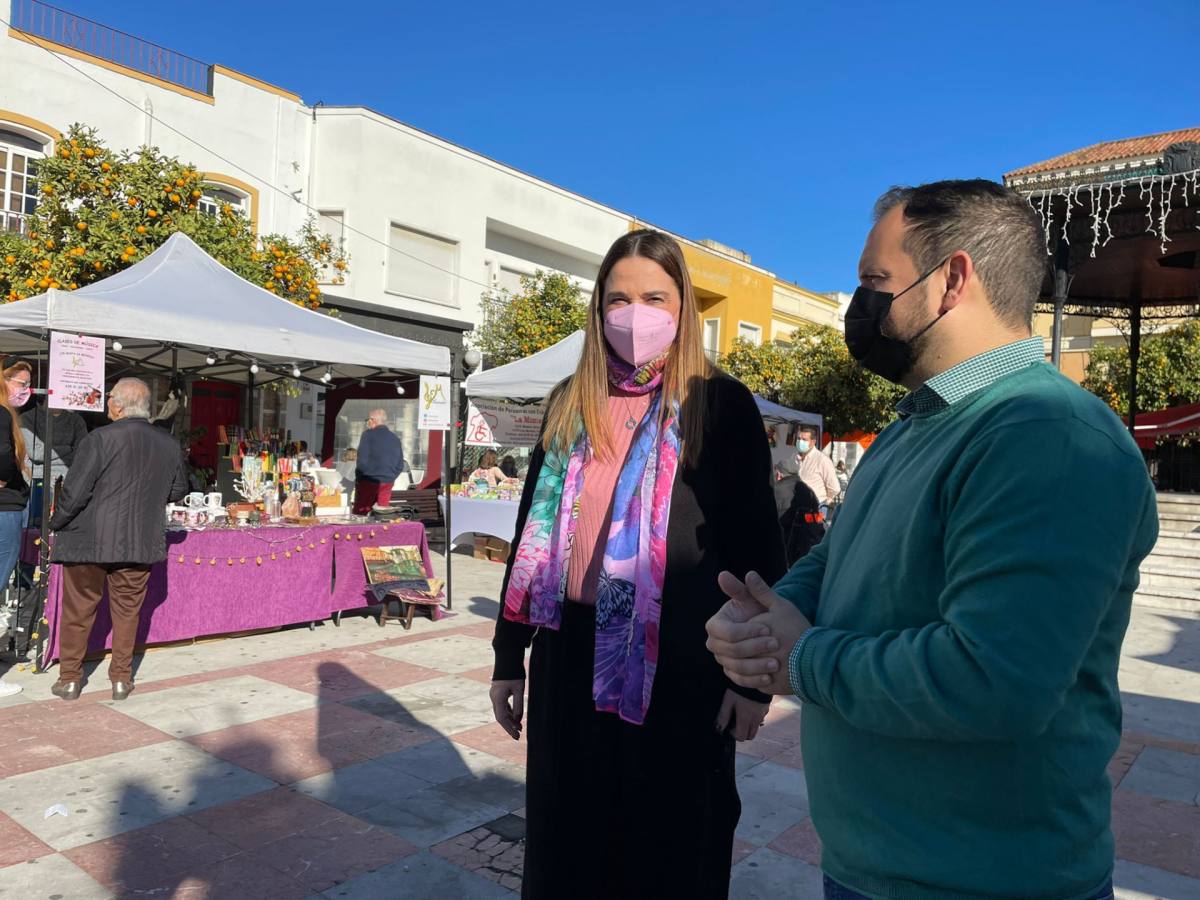 El delegado de Festejos, Daniel Pérez Cumbre, y la delegada de Participación Ciudadana, Inmaculada Domínguez, han visitado esta mañana el mercado artesano navideño, instalado hoy en el céntrico Paseo de la Constitución, desde las 11:00 hasta las 20:00 horas, con motivo de las fiestas.