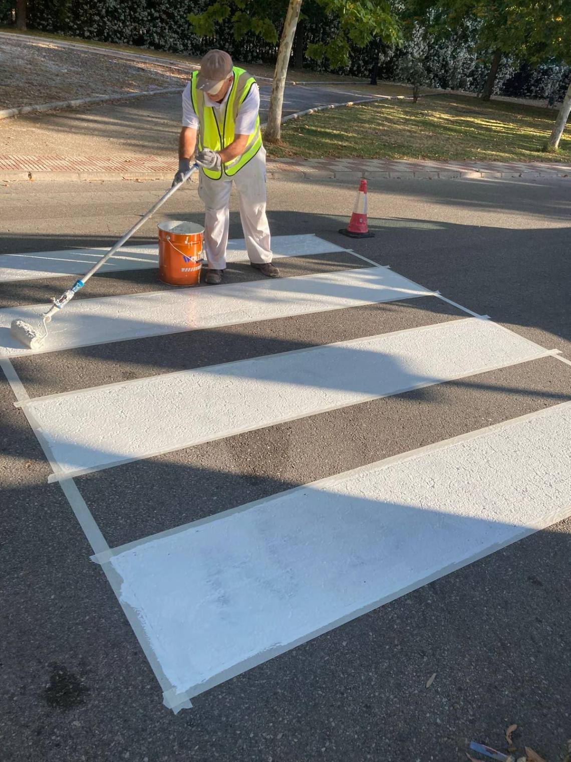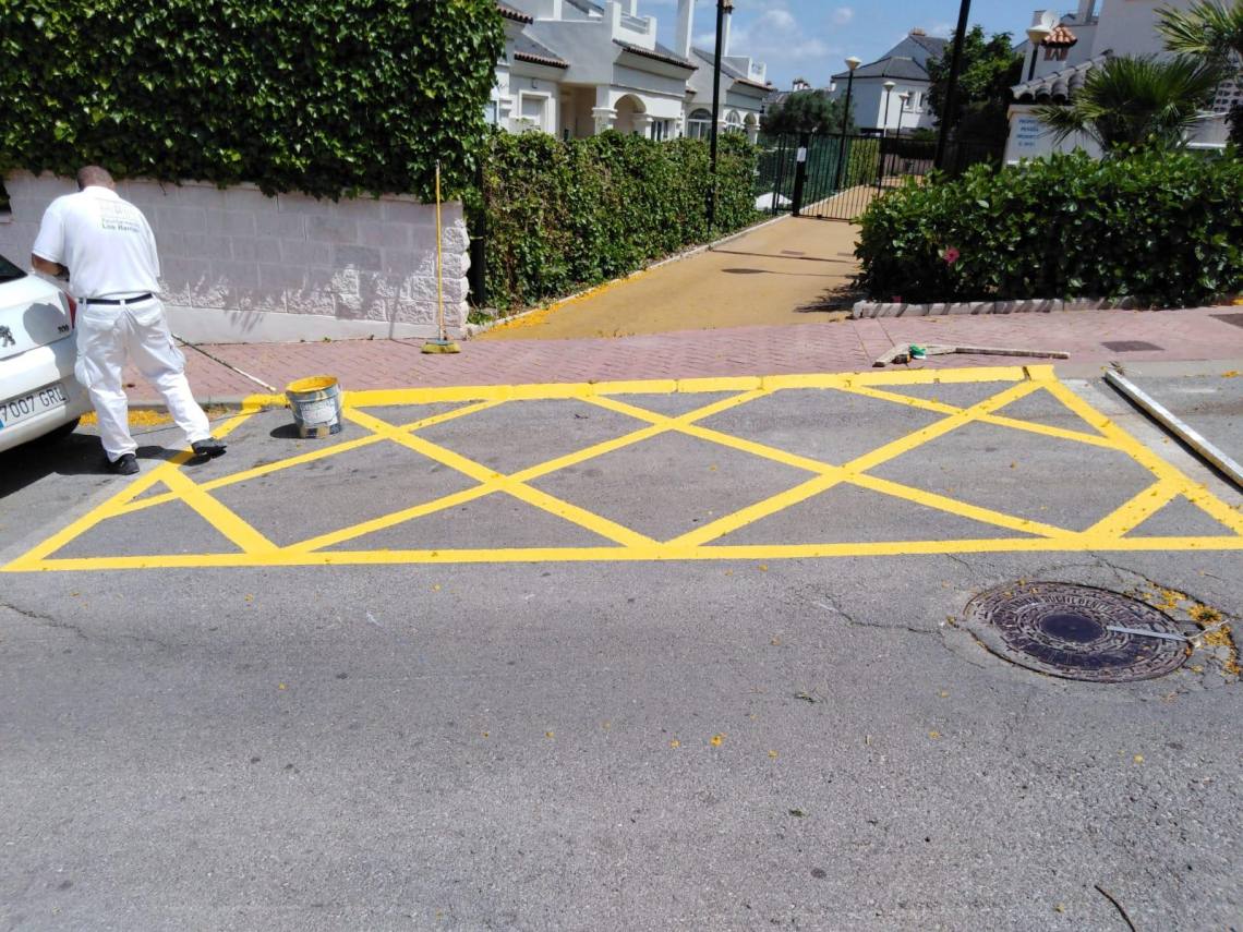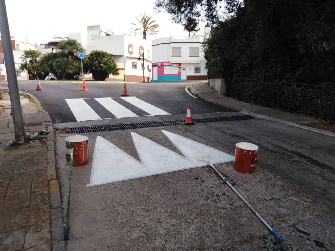 Operarios de esta delegación han ejecutado trabajos de pintura en aparcamientos y pasos de cebra de zonas como Los Tinajones, Mirador del Río, en Los Barrios; y en la calle Ortega y Gasset de Los Cortijillos y en la urbanización de Ciudad Jardín.