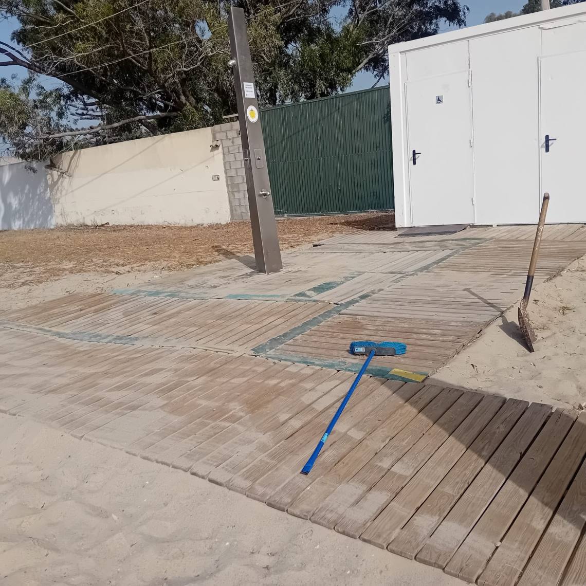 A estos trabajos se suma los de mantenimiento en la playa de Palmones en pasarelas, cartelería, baños etc.