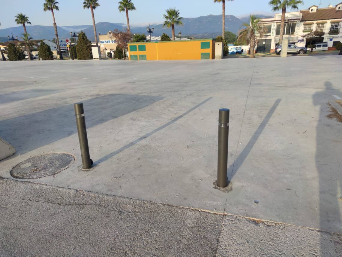 Otra de las mejoras ha sido la restauración del monolito de la plaza Blas Infante. También se han instalado bolardos en la puerta colegio San Isidro y en Avda. don Juan Rodríguez, además de en las entradas de la nueva ubicación del mercadillo.