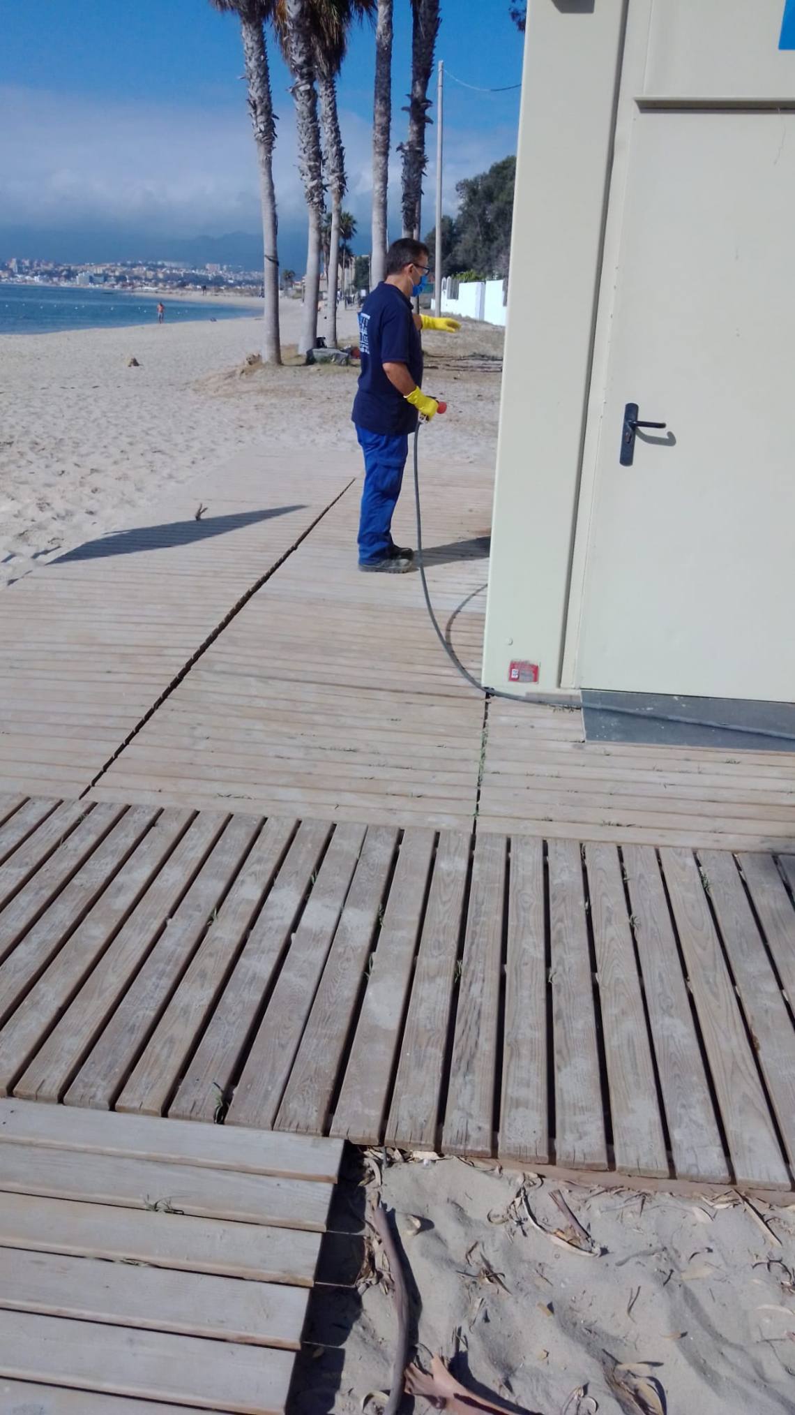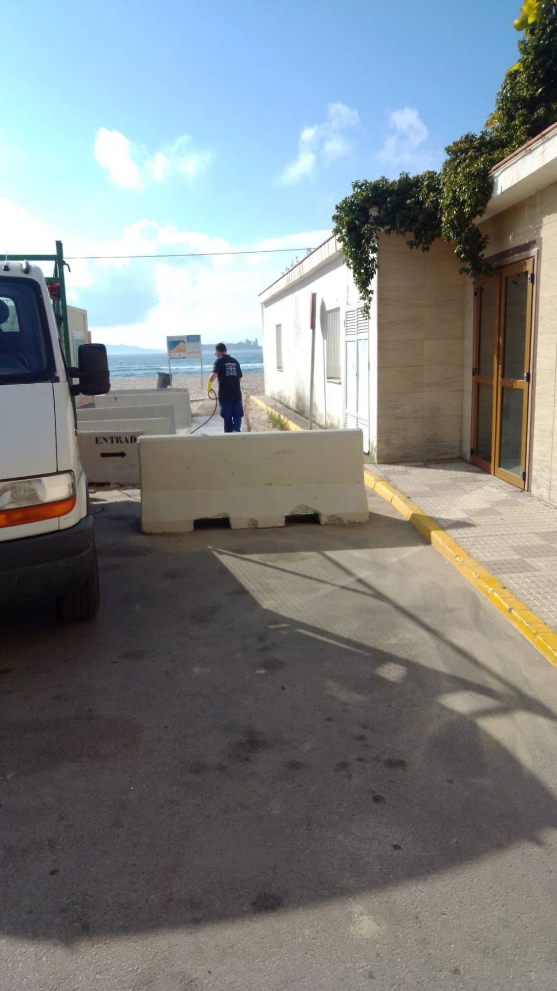 La delegación de Obras y Servicios del Ayuntamiento de Los Barrios, que dirige Evaristo Delgado, ha acometido en la jornada de hoy amplias labores de desinfección de calles y espacios públicos en todos los núcleos del término municipal. Dichos trabajos también se han extendido a la playa de Palmones.
