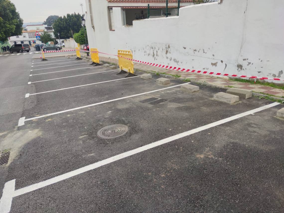Otra de las actuaciones ha sido la instalación de unos 30 bordillos de topes en los aparcamientos frente colegio Luis Lamadrid.