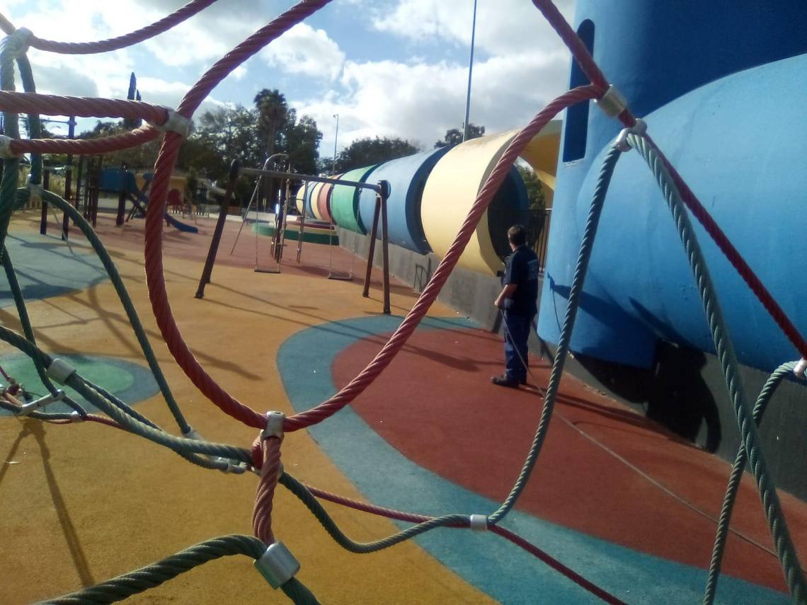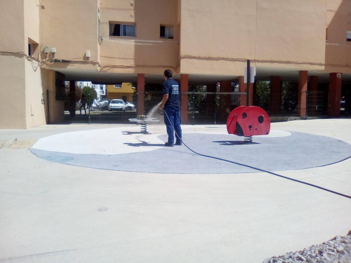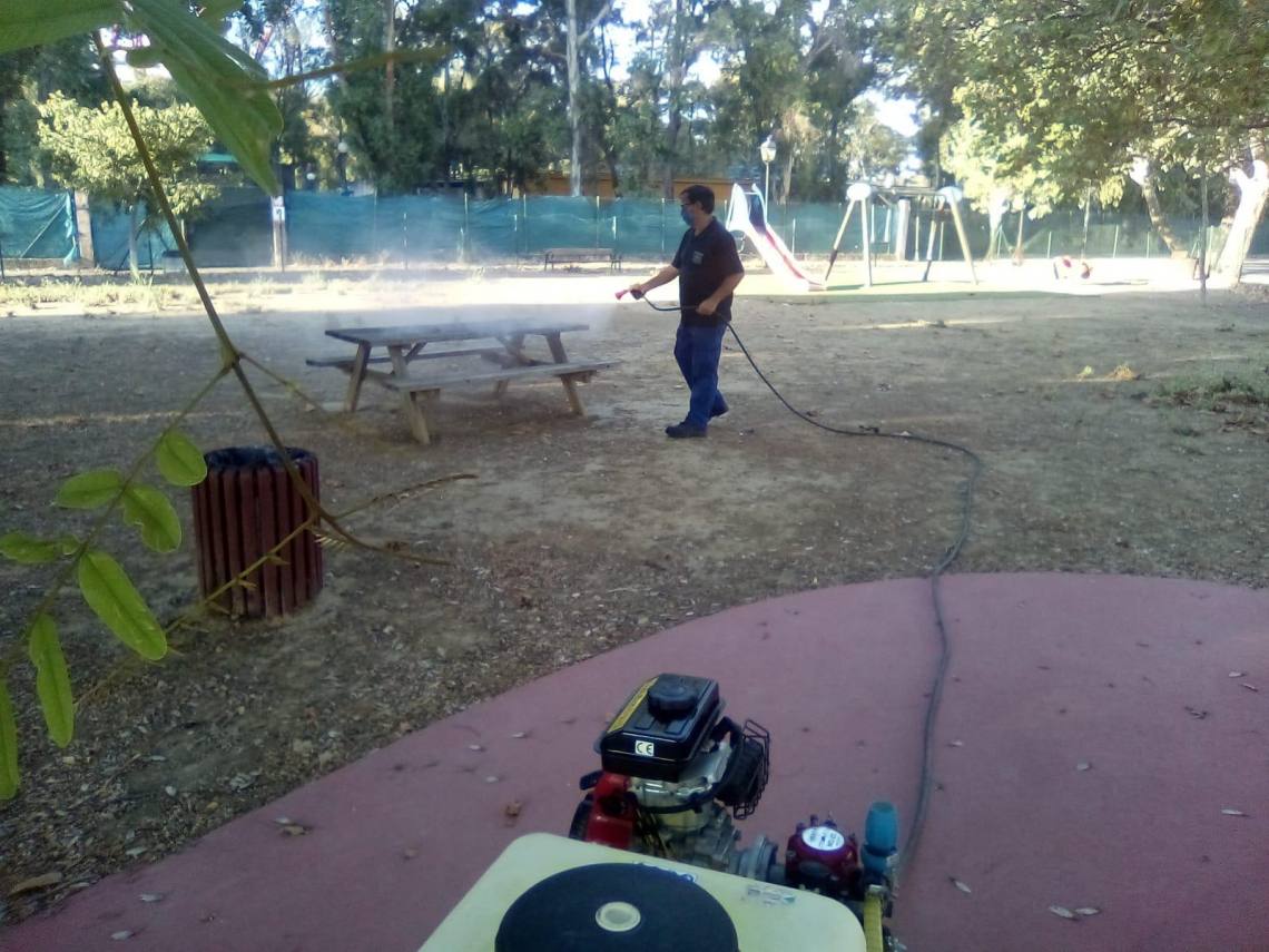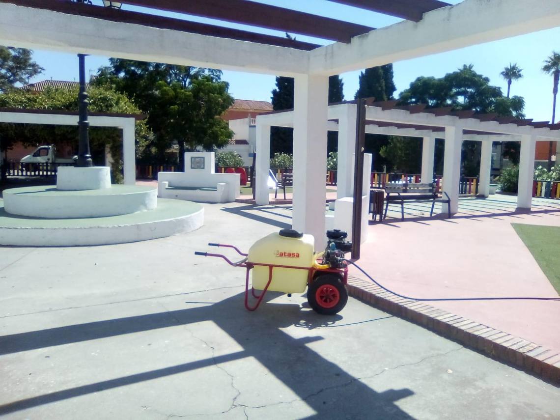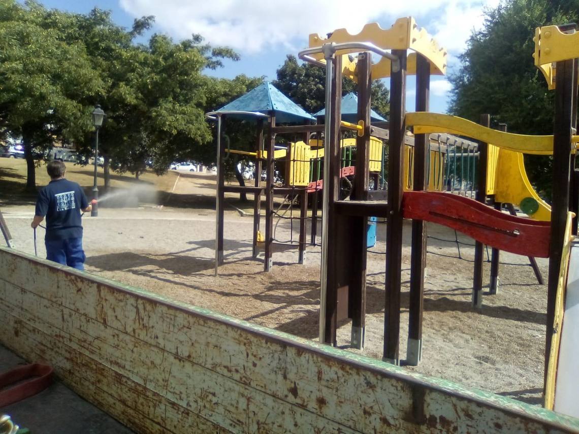 La delegación de Obras y Servicios, que dirige el concejal Evaristo Delgado, continúa con los trabajos de desinfección que se llevan a cabo en todos los parques infantiles del municipio dos veces por semana desde que se levantó el estado de alarma.