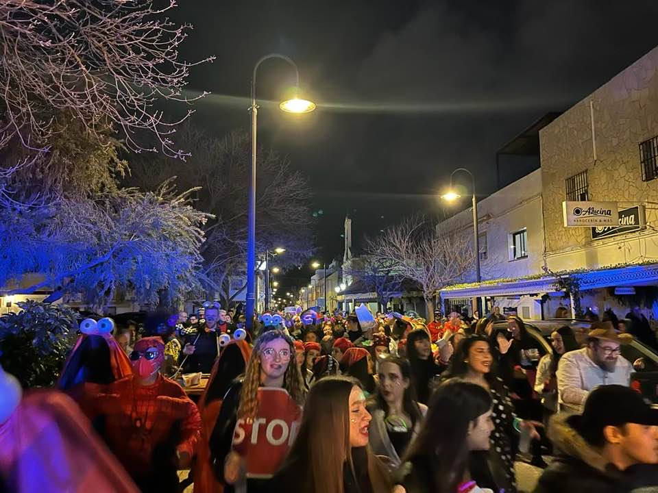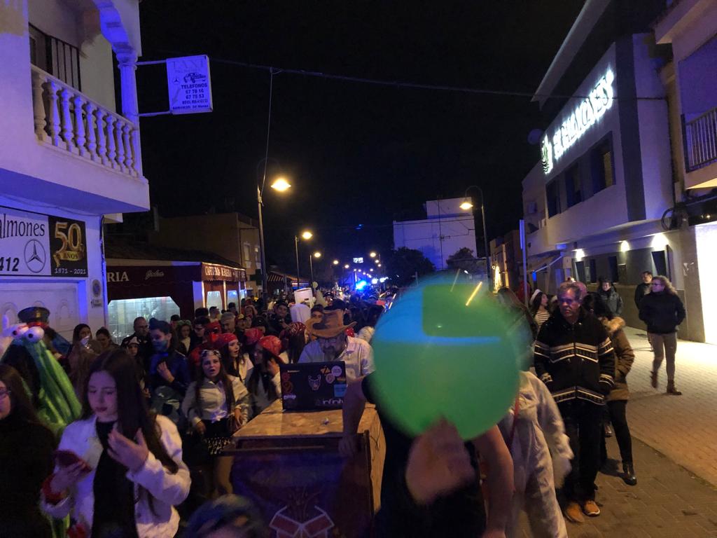 Por la noche fue el turno de los mayores con el pasacalle de carnaval de adultos, donde el ingenio de los disfraces y la gran participación de vecinos y vecinas disfrazados crearon el grana ambiente que luego se disfrutó en la carpa.