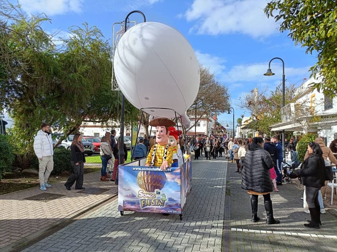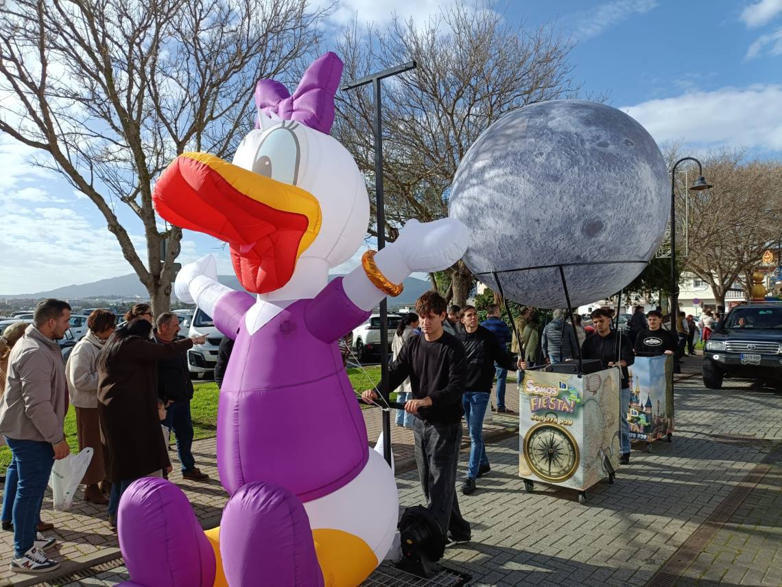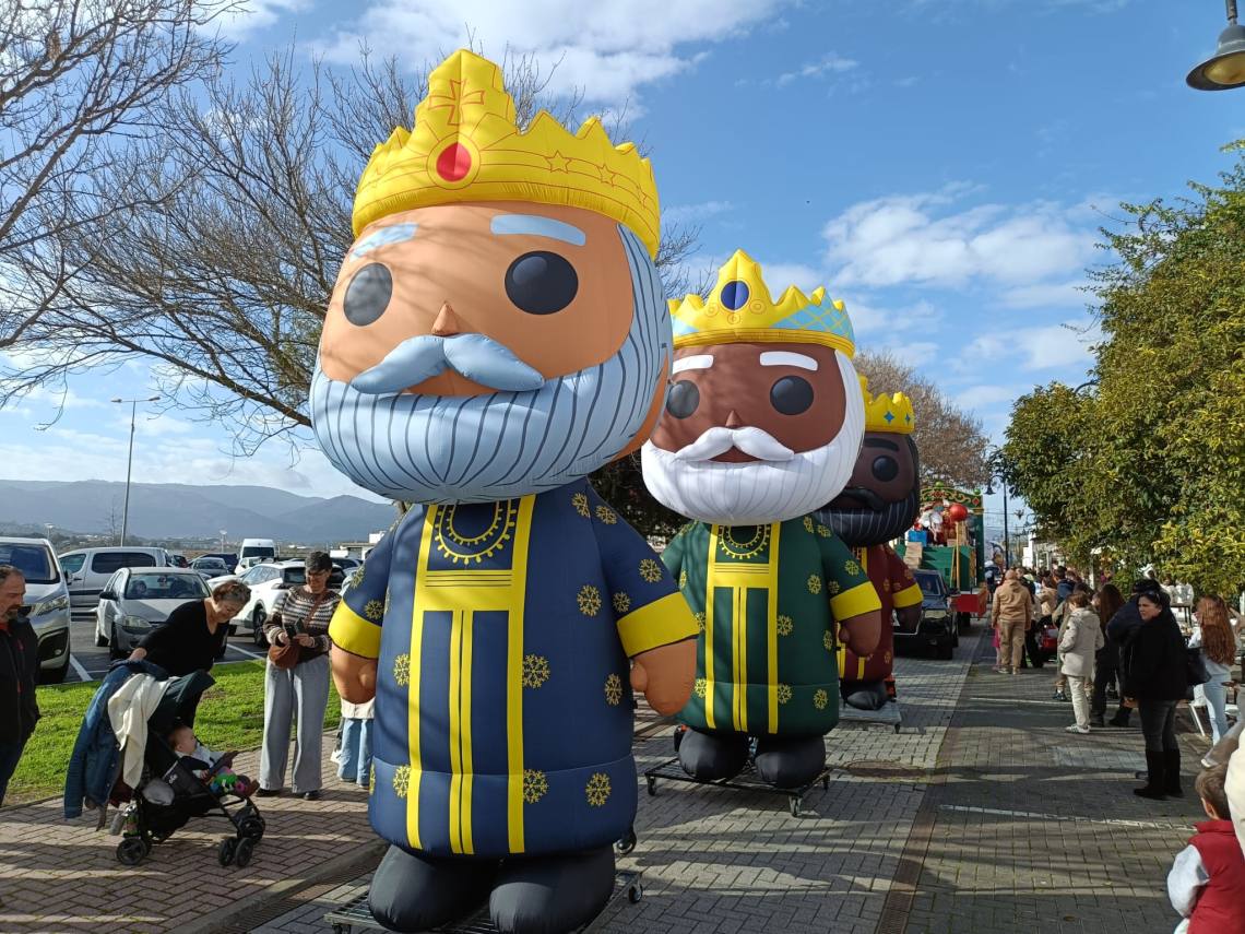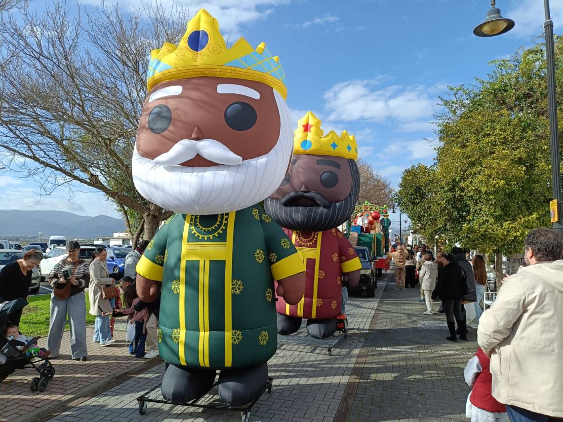Sobre el mediodía salía una cabalgata con hasta tres carrozas han formado el cortejo de los Magos de Oriente, todo acompañado de animaciones de tres hinchables de Reyes Magos y otros personajes hinchables de personajes infantiles de Disney.
