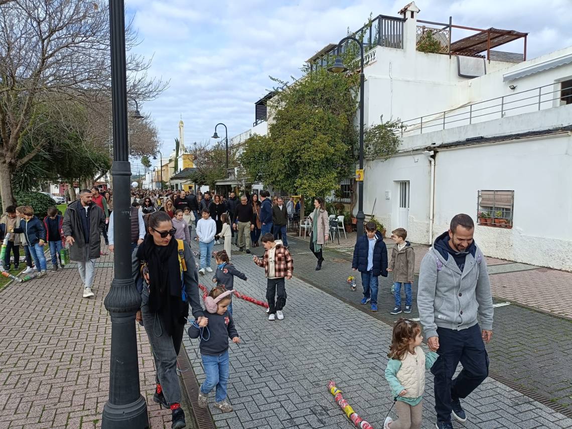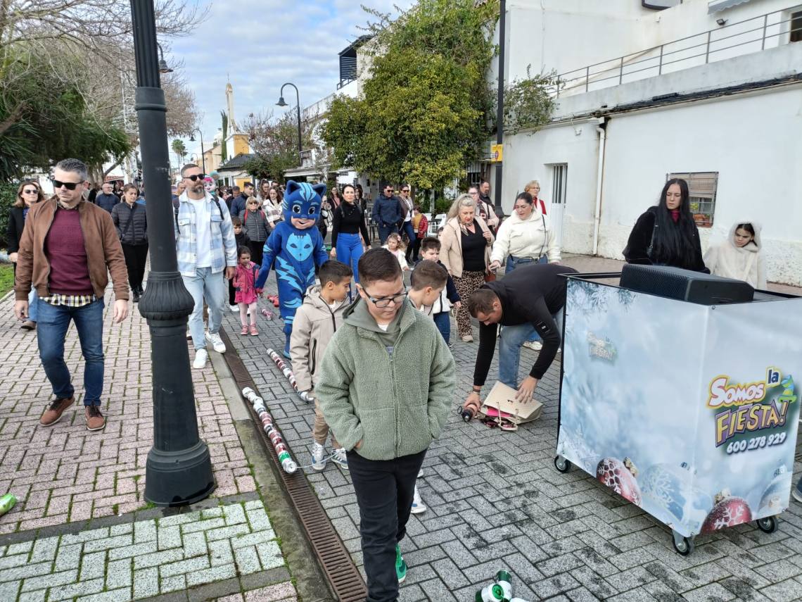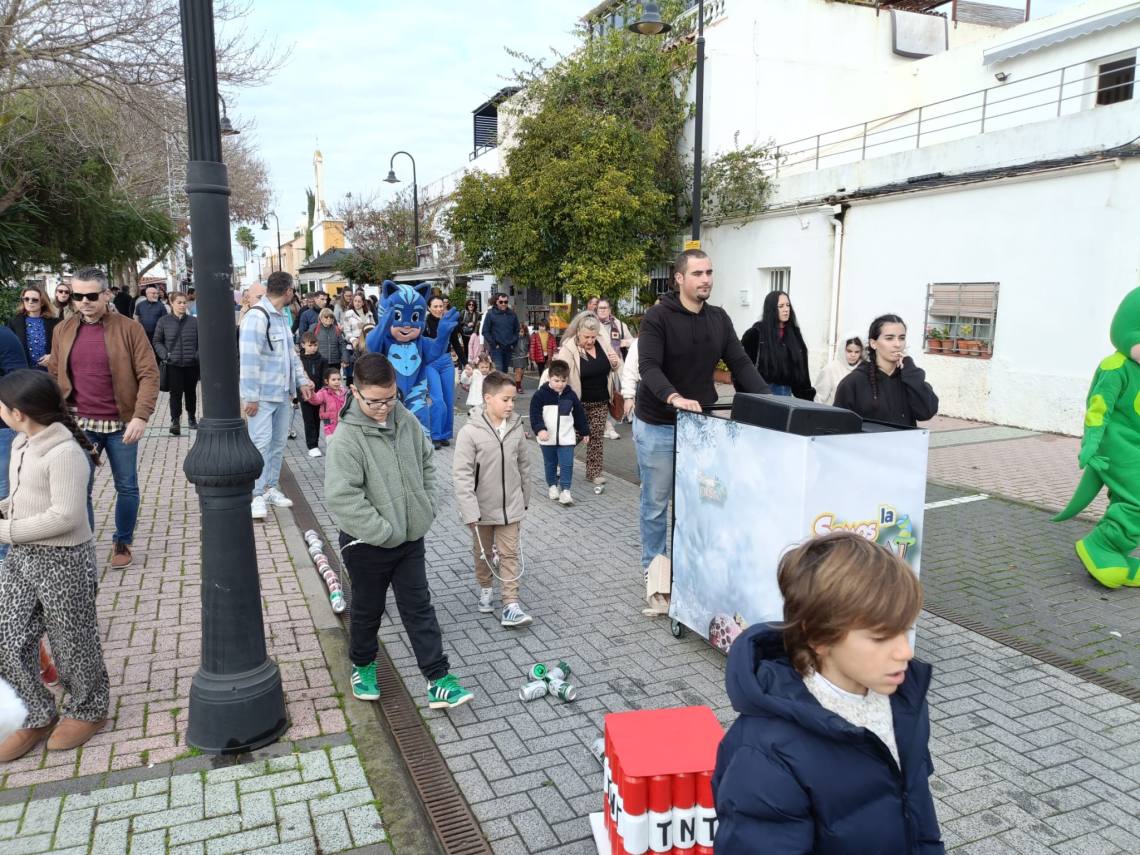 Todo ambientado con la música y la de una charanga y la banda de música de Los Barrios, todo acompañado de cientos de kilos de caramelos lanzados desde las carrozas.