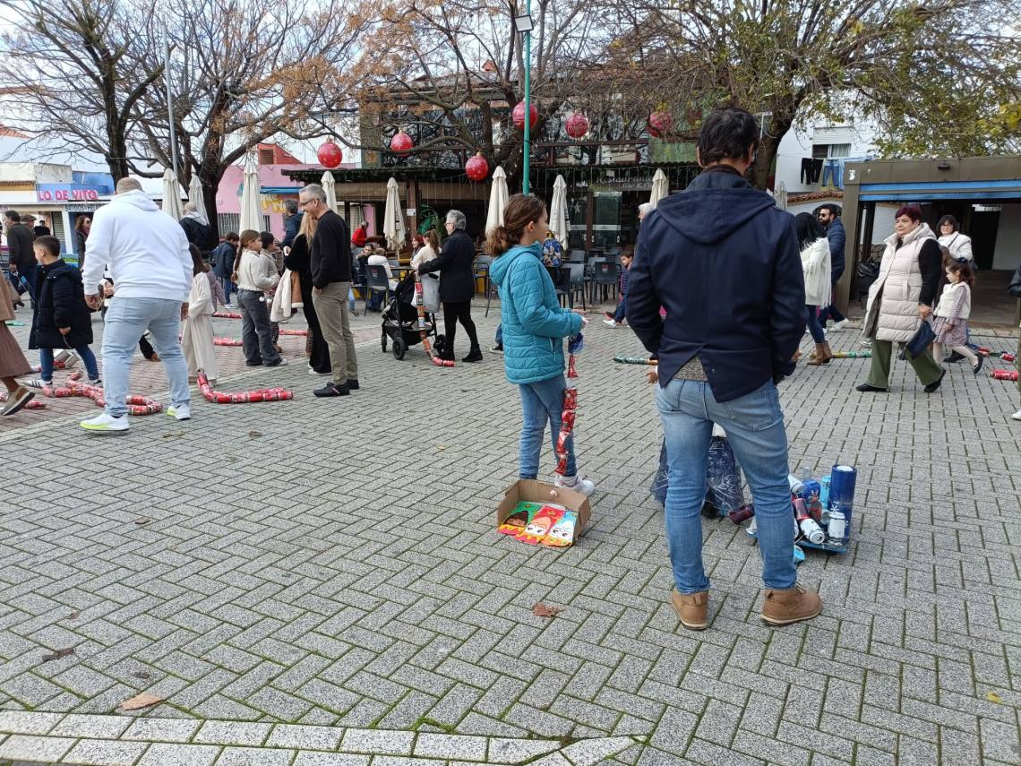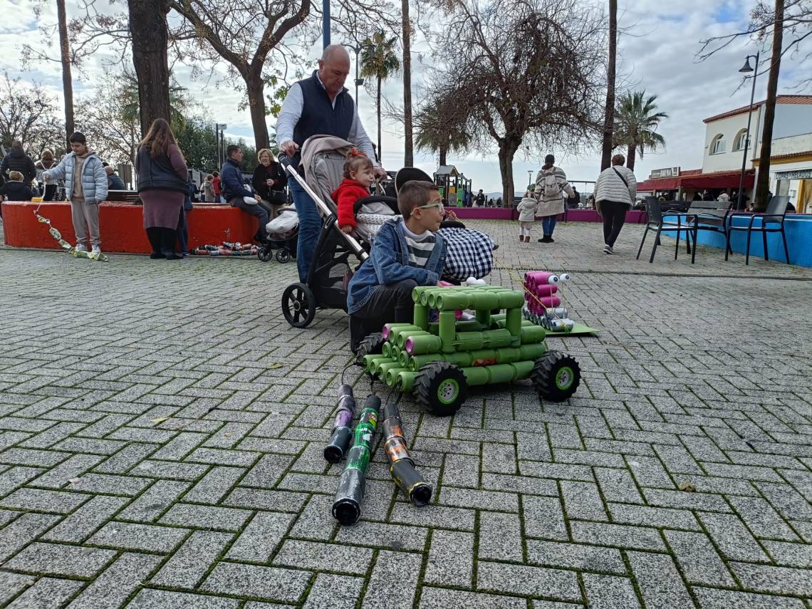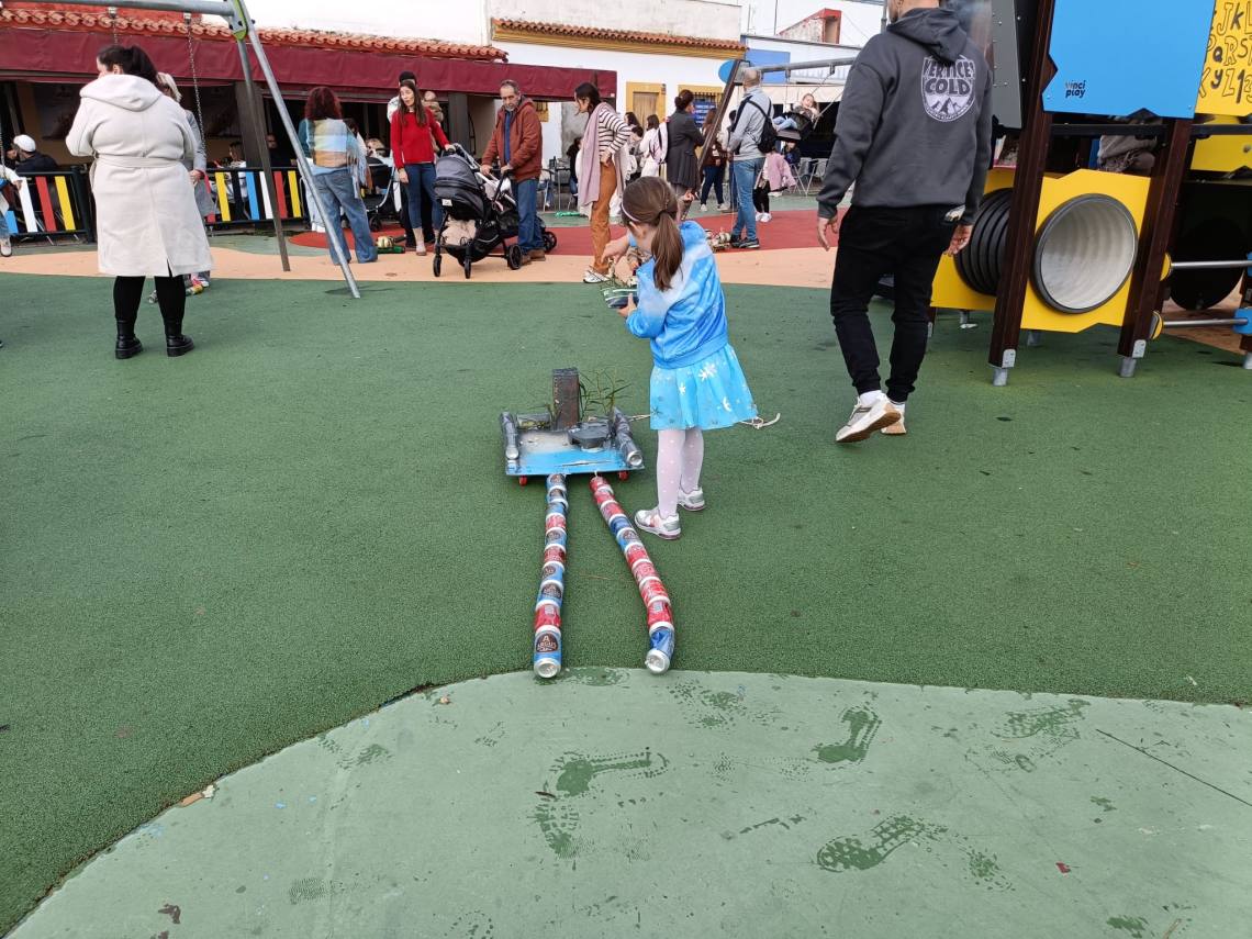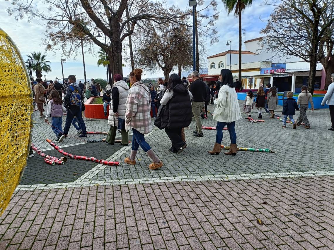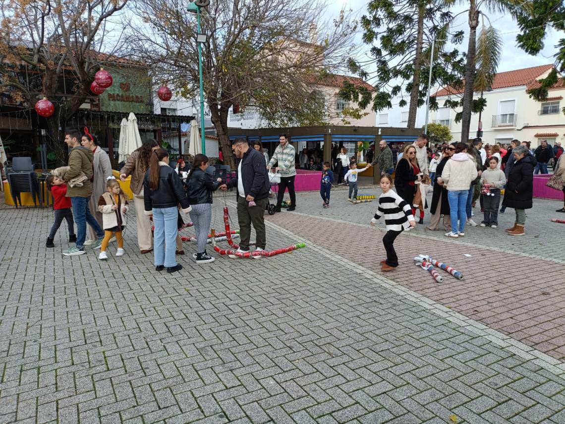 Esculturas de latas en forma de regalo de Navidad, muñeco de nieve o un tren han sido algunas de las figuras que han paseado junto a sus familias los cientos de niños y niñas que se han dado cita esta mañana en Palmones.