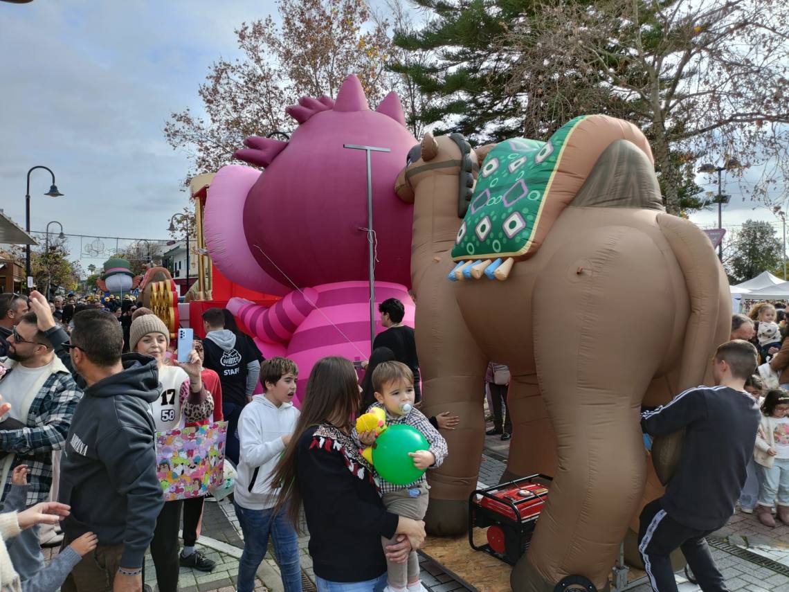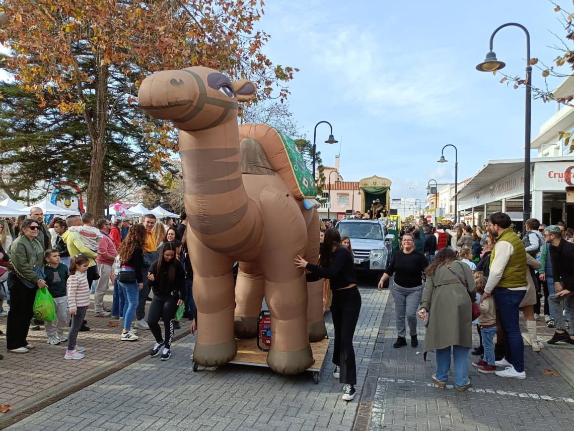 Sobre la una del mediodía salía una cabalgata con hasta tres carrozas han formado el cortejo de los Magos de Oriente, todo acompañado de animaciones dos grandes camellos hinchables y otras animaciones.