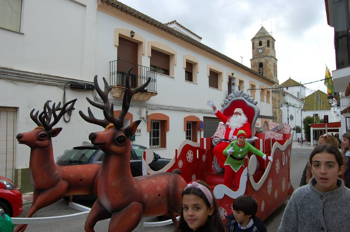 Papa Noel, a continuación, se dirigió al Paseo subido en un magnífico trineo tirado por elfos recorriendo las principales calles del centro urbano. En el Paseo fue recibido por una gran multitud de niños y familias en torno al Templete y al Poblado Navideño hinchable, desde donde Papá Noel saludó y deseó felices fiestas a todo el municipio y posteriormente fue recibiendo y fotografiándose con cada cada niño.