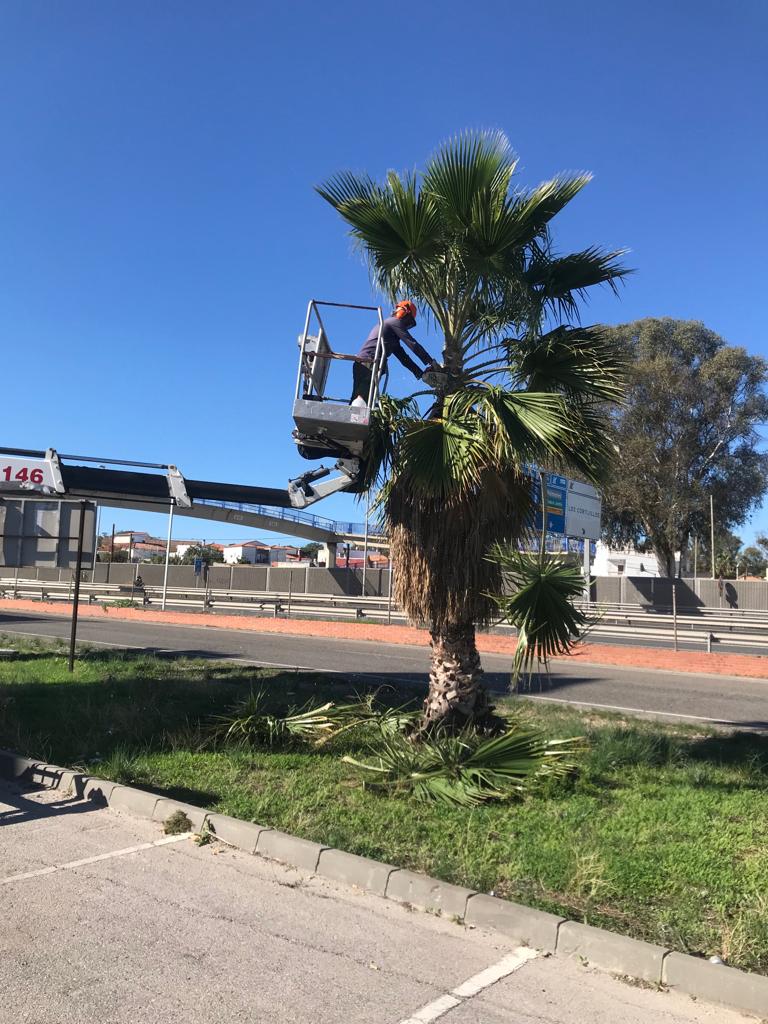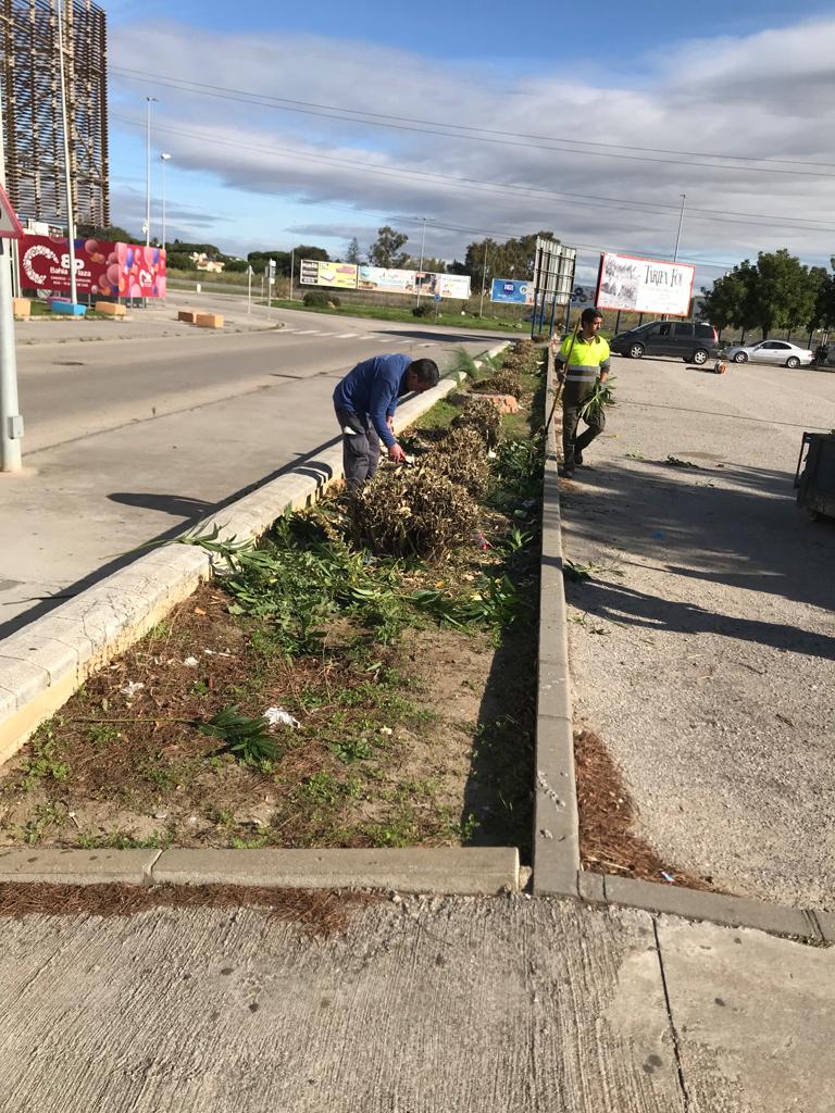 “Unos trabajos de desbroce y limpieza ya planificados y que estamos llevando con operarios municipales en zonas como las jardineras de la zona trasera de los multicines y la poda de palmeras en el frontal de la vía de servicio junto a Mercadona del parque empresarial”, apuntó Silva.