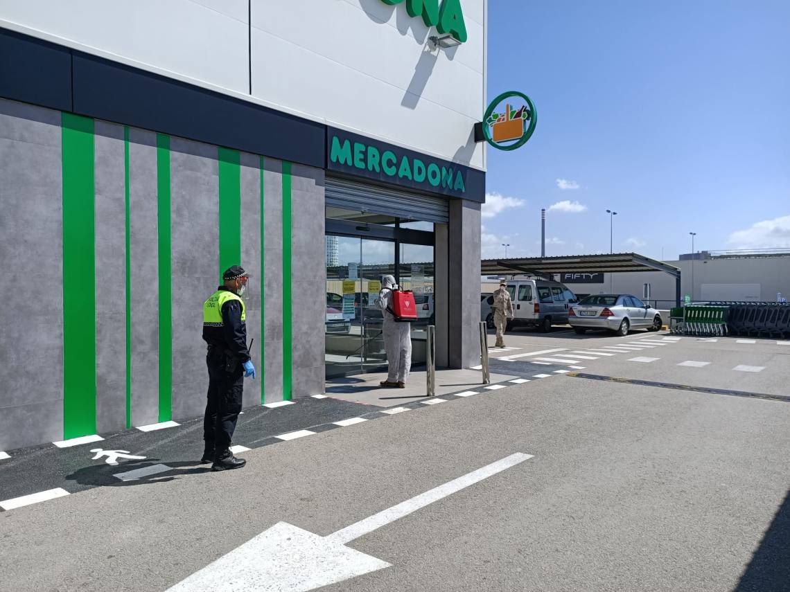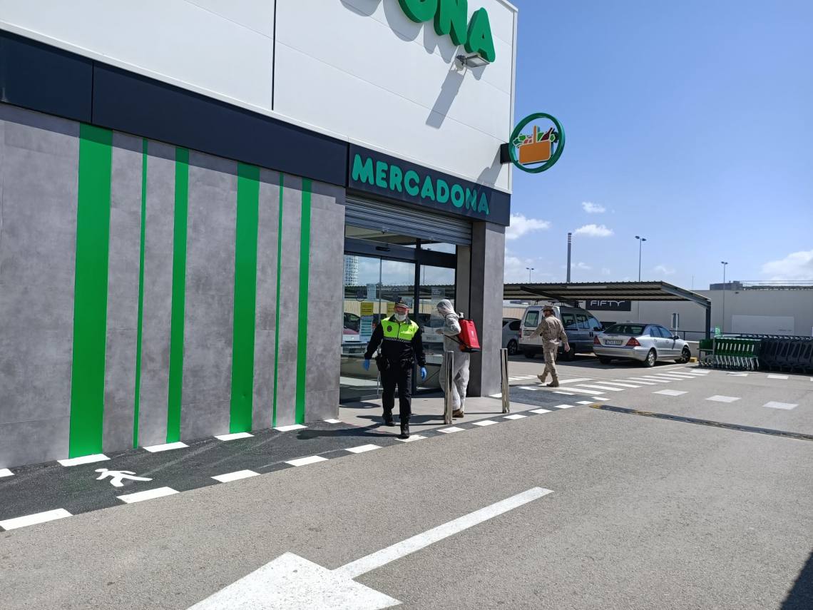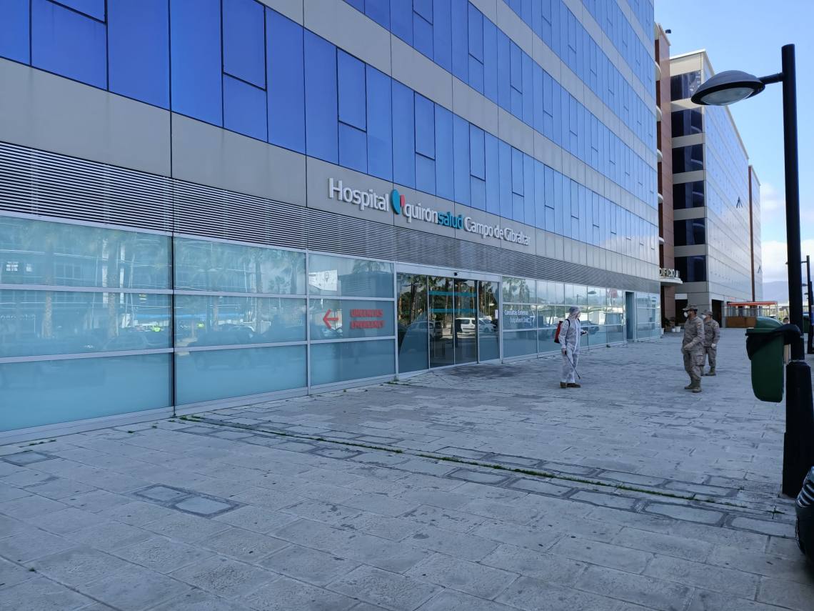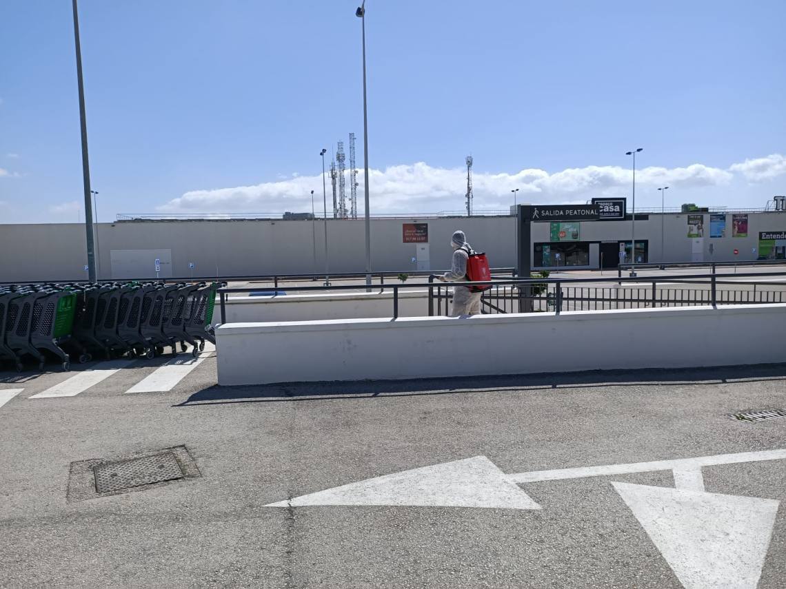 Estas patrullas han desinfectado zonas de paso de personas del polígono de Palmones como las entradas de los diferentes supermercados que existe, así como la zona del Hospital Quiron.
