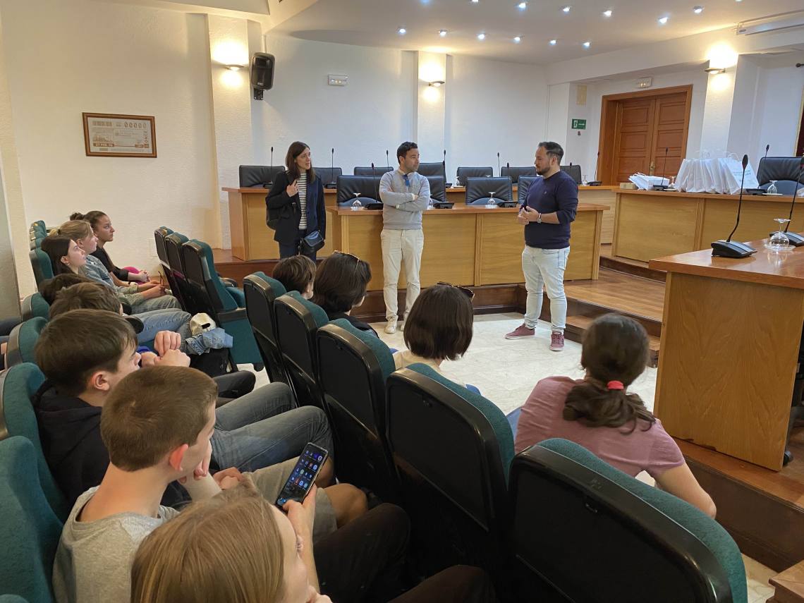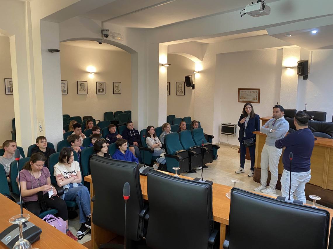 El concejal delegado de Educación, Daniel Pérez Cumbre, ha recibido en el salón de plenos de la Casa Consistorial a los alumnos y las alumnas procedentes de Francia que participan en una experiencia de intercambio con alumnos y alumnas del Instituto de Educación Secundaria ‘Sierra Luna’ de Los Barrios.