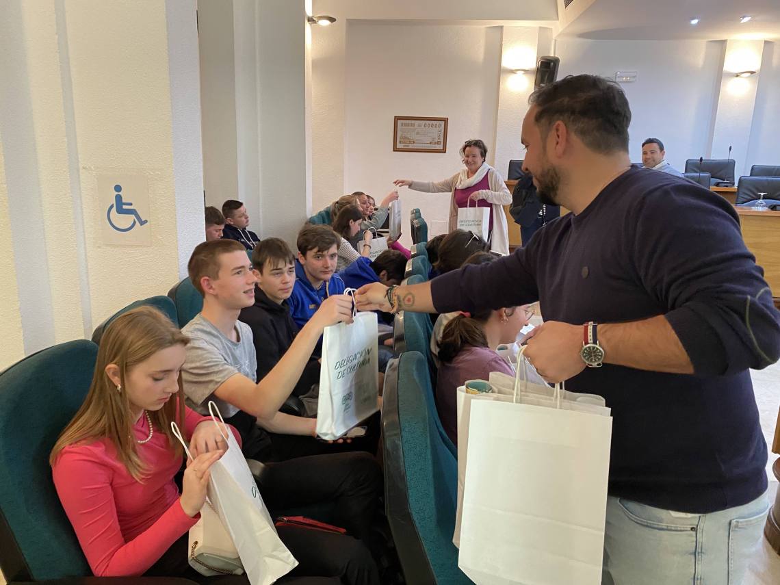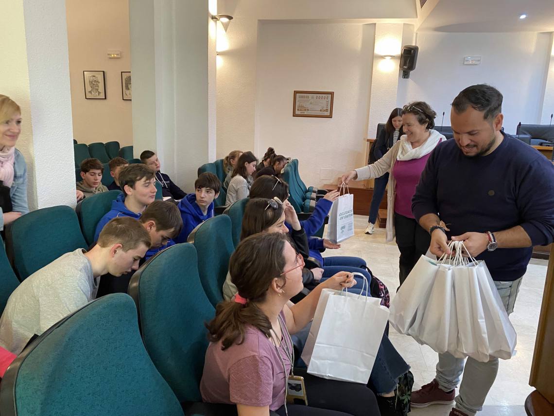 Pérez Cumbre ha dirigido a estos jóvenes unas palabras de salutación, comentándoles algunos detalles relacionados con lo más destacado de las fiestas y tradiciones de Los Barrios, y ha entregado a cada uno de ellos un obsequio en recuerdo de su paso por la villa.