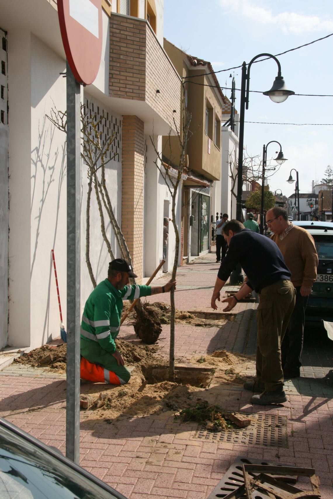 El presidente de la Junta Municipal de Distrito, José Antonio Gómez, ha supervisado este mediodía los trabajos en los que jardineros municipales han plantado ejemplares de naranjos y ficus.
