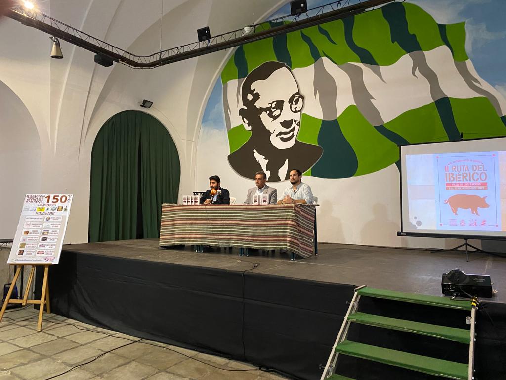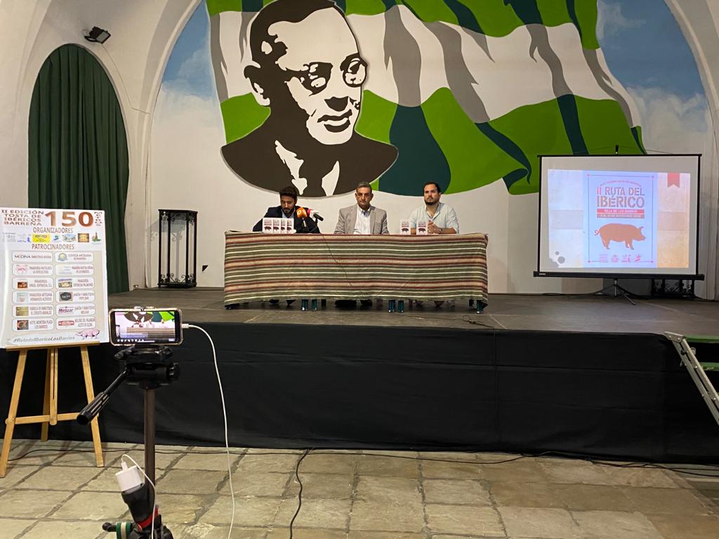 El concejal de Turismo, Antonio Dávila; y el delegado de Festejos, Daniel Pérez Cumbre, han presentado la segunda edición de la Ruta del Ibérico Villa de Los Barrios “Del cochino hasta los andares”, que se celebrará del 3 al 13 de noviembre en el municipio. Un acto celebrado en el edificio Pósito y al que han asistido la concejala de Participación Ciudadana, Inmaculada Domínguez; y el edil de Comercio, Pablo García.