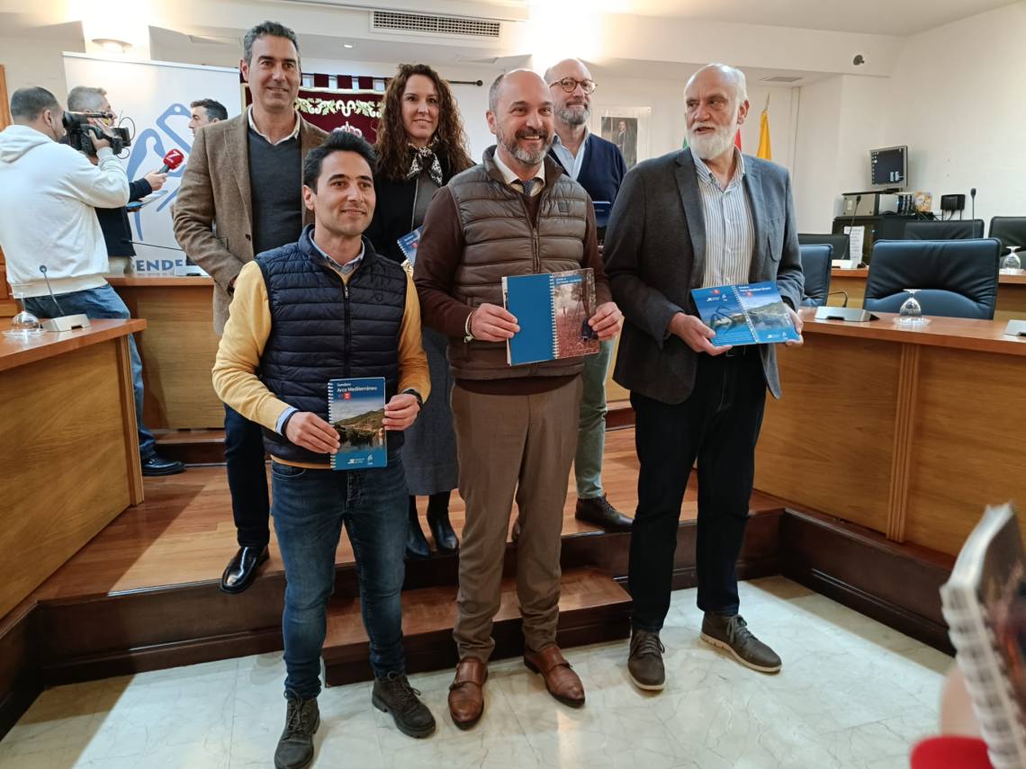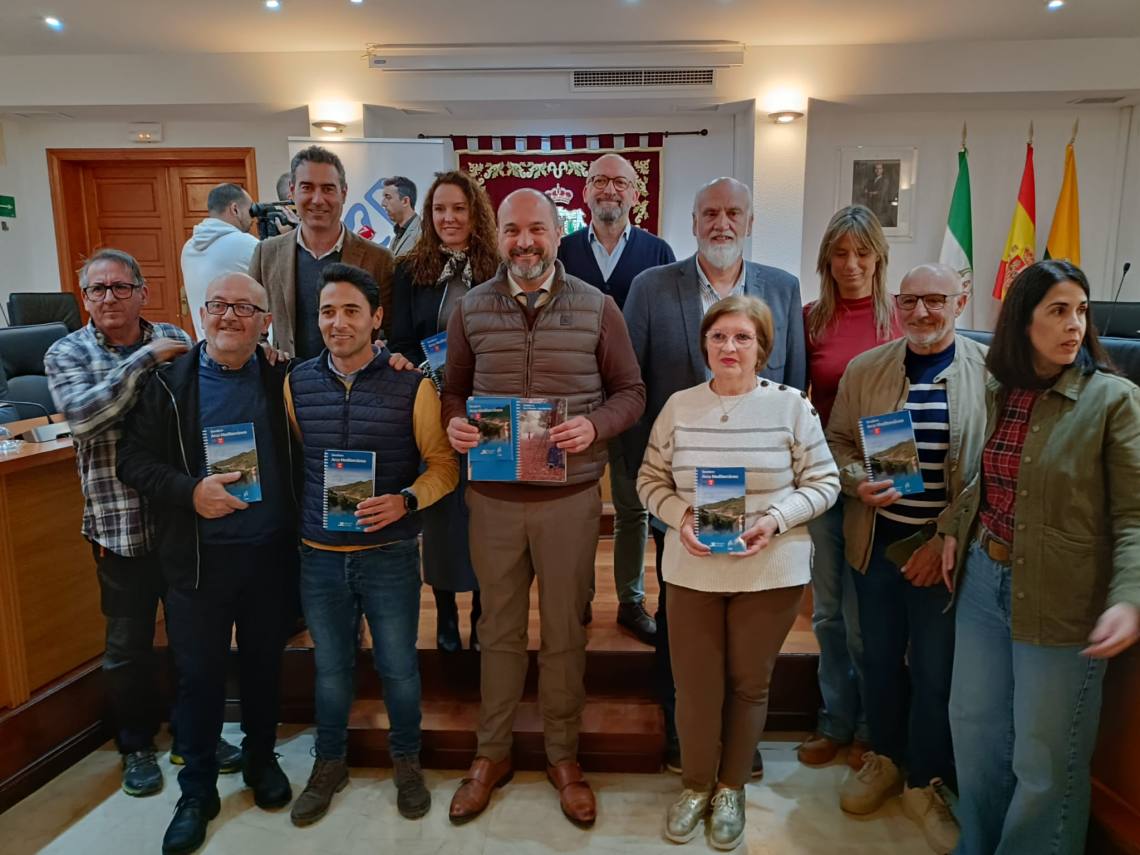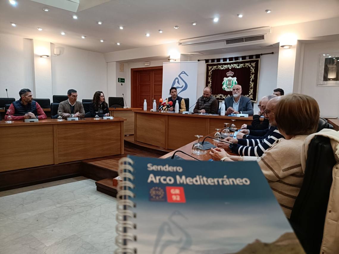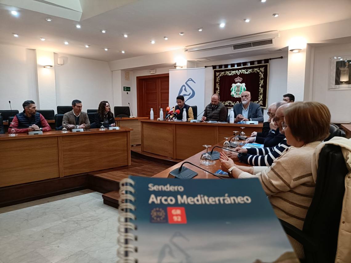 El alcalde de Los Barrios, Miguel Alconnchel; el vicepresidente segundo de la Diputación de Cádiz, Javier Vidal; y el delegado de Medio Ambiente, Antonio Dávila, han presentado este lunes en el salón de plenos la topoguía del tramo gaditano del llamado GR-92 ‘Arco Mediterráneo’, un sendero de larga distancia que comienza en Tarifa y recorre la costa mediterránea del país. Éste a su vez se integra en el E-12. Cuando esté terminado conectará 1.490 kilómetros de viales públicos de España, Francia, Italia, Eslovenia y Croacia.
