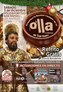 En esta edición de la olla habrá dulces navideños, y varios grupos amenizarán la jornada con música desde las 13.30h como ‘Los Borriquitos Navideños’, Alexis, ‘Potajito Flamenko’ y Ernesto Márquez.
