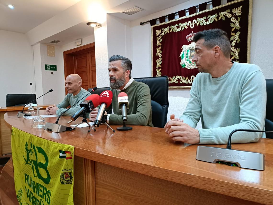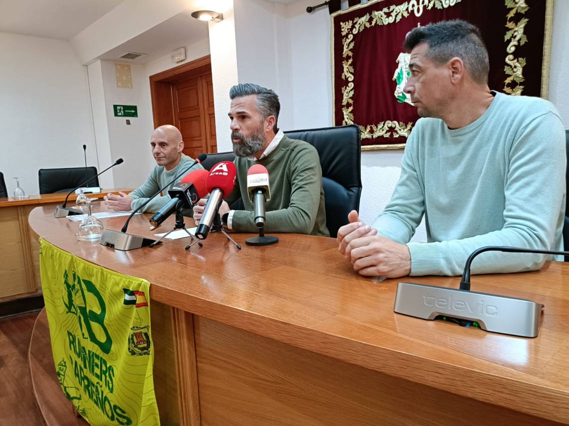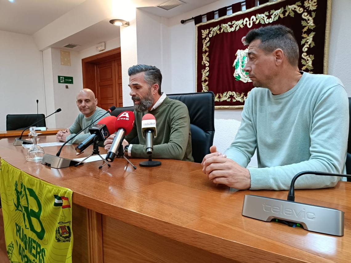El concejal de Deportes, Raúl Álvarez; el delegado de Servicios Sociales, Carlos Torres; y el presidente del club ‘Runners Barreños’, Manuel González, han presentado el concurso entre los centros escolares de Los Barrios para el cartel de la cuarta edición de la ‘Borriquín Trail’ 2025, que se celebra este año el 19 de octubre.